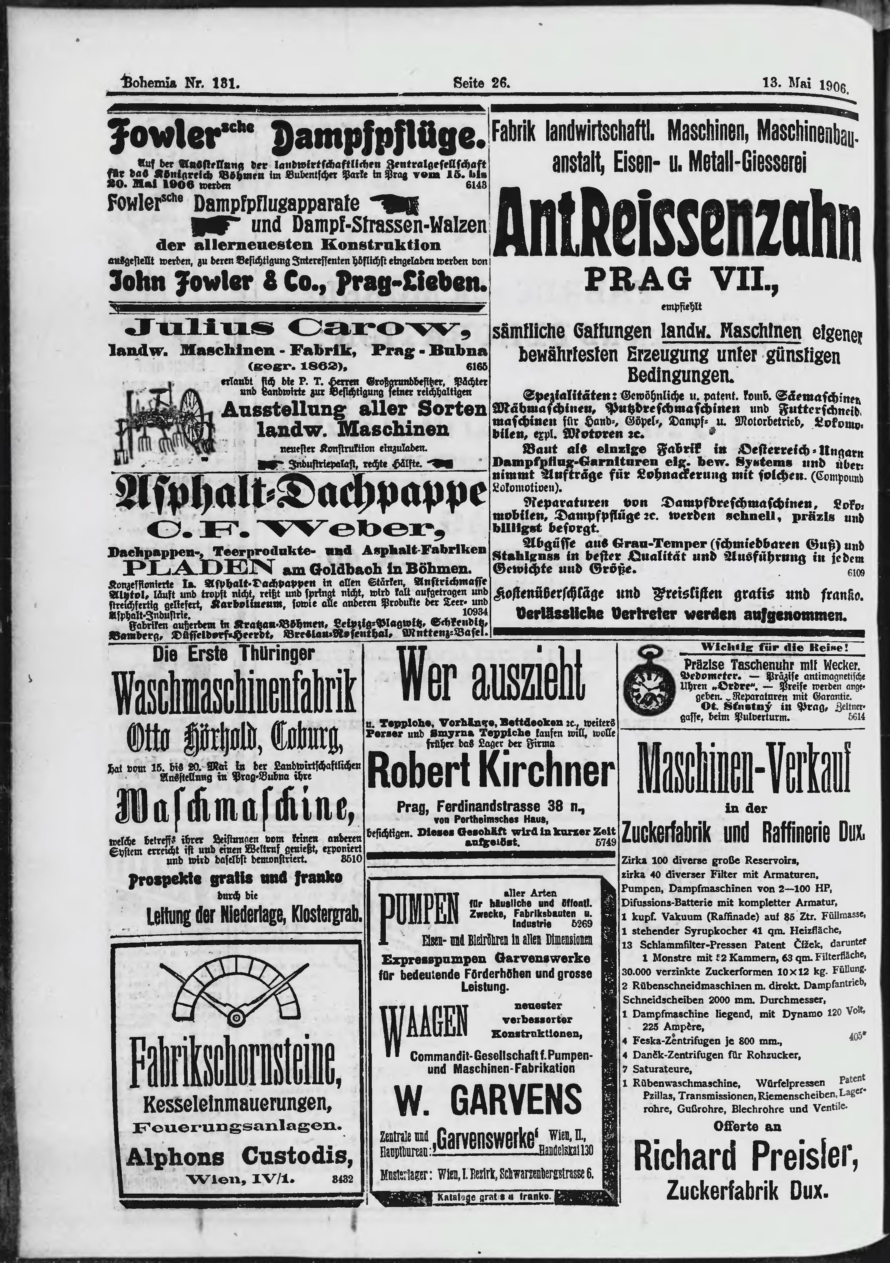 * Datum vydání výtisku: 13.5.1906 Číslo výtisku: 131 Poznámky k výtisku: ranní vydání;