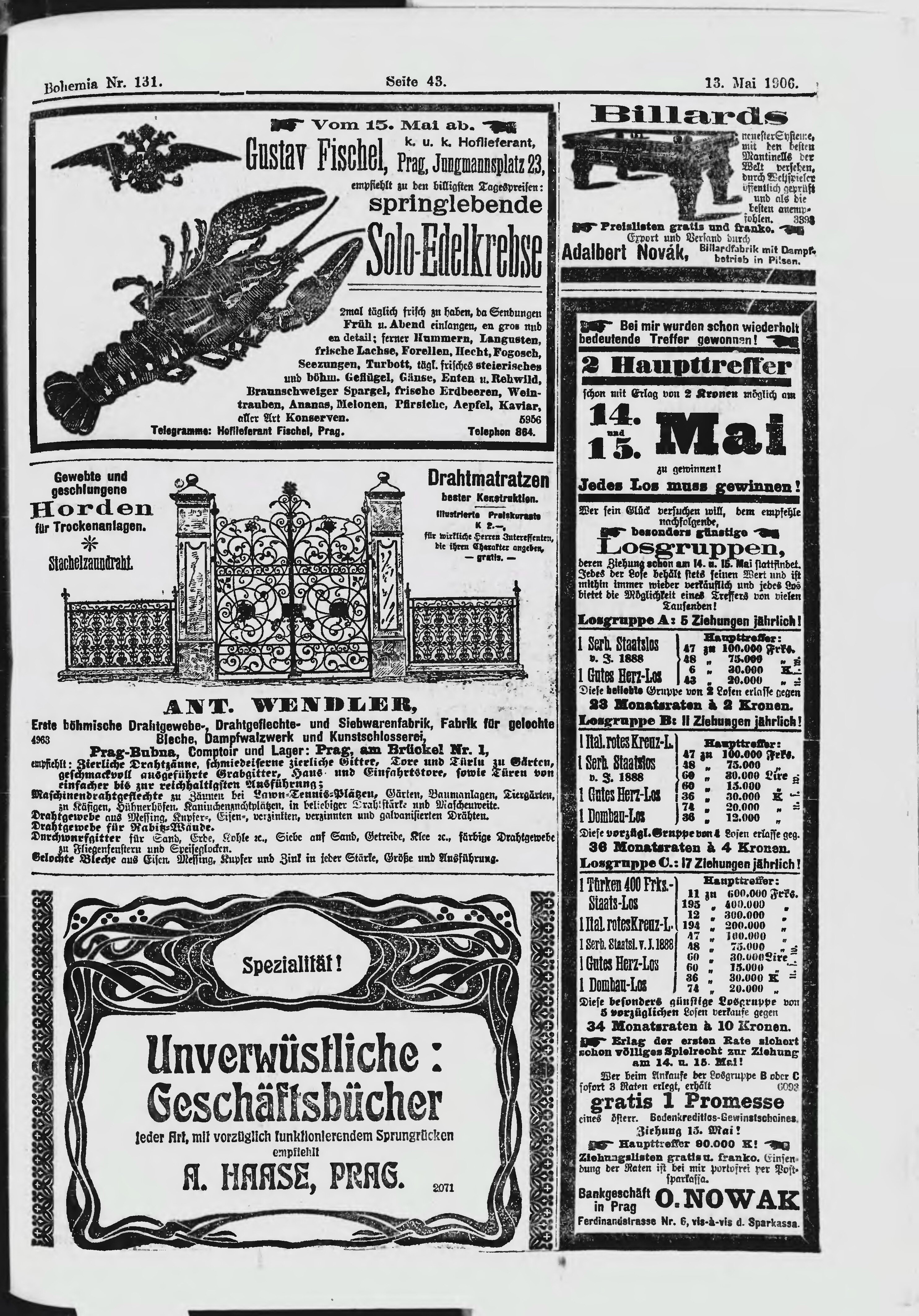 * Datum vydání výtisku: 13.5.1906 Číslo výtisku: 131 Poznámky k výtisku: ranní vydání;