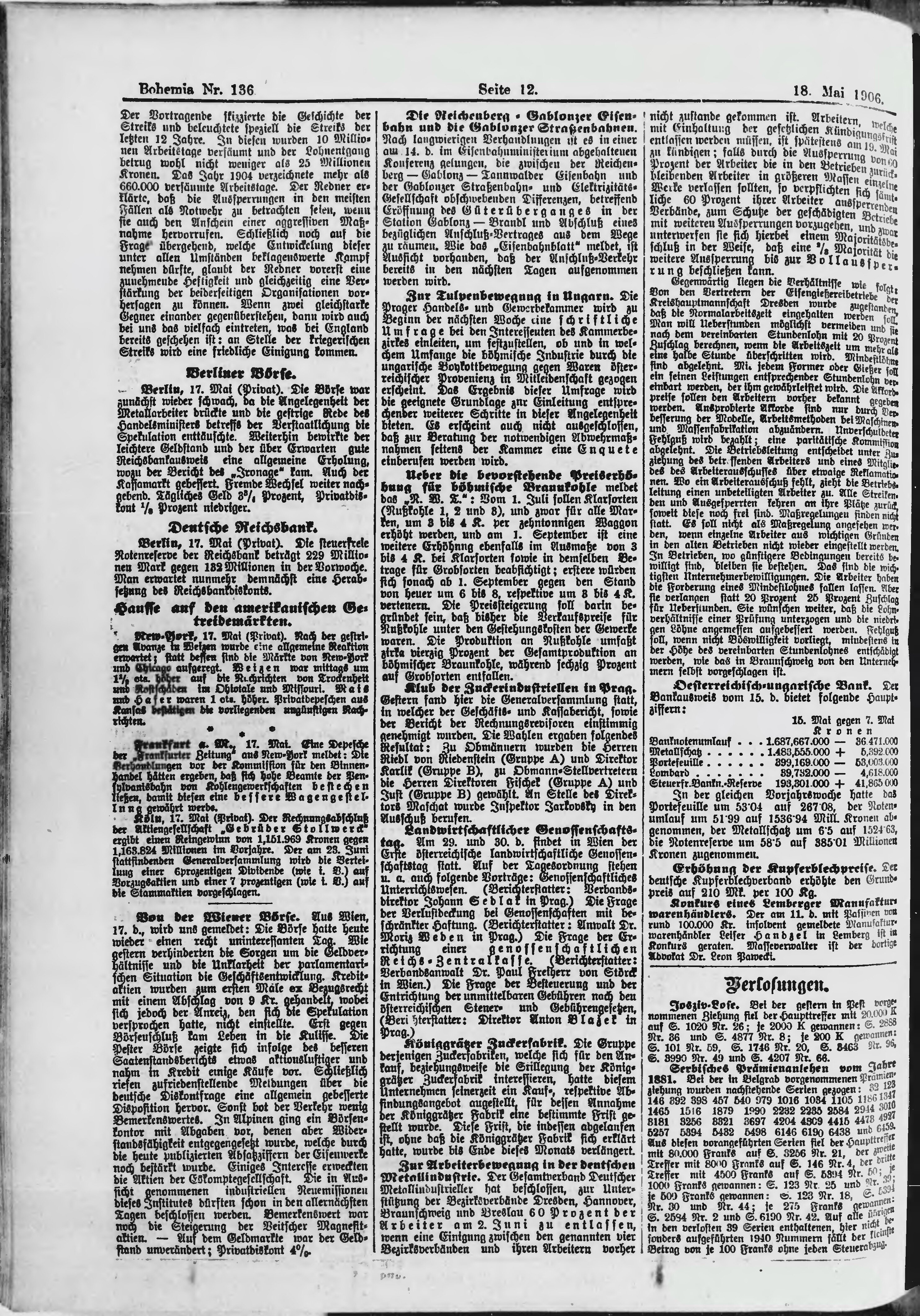 * Datum vydání výtisku: 18.5.1906 Číslo výtisku: 136 Poznámky k výtisku: ranní vydání;