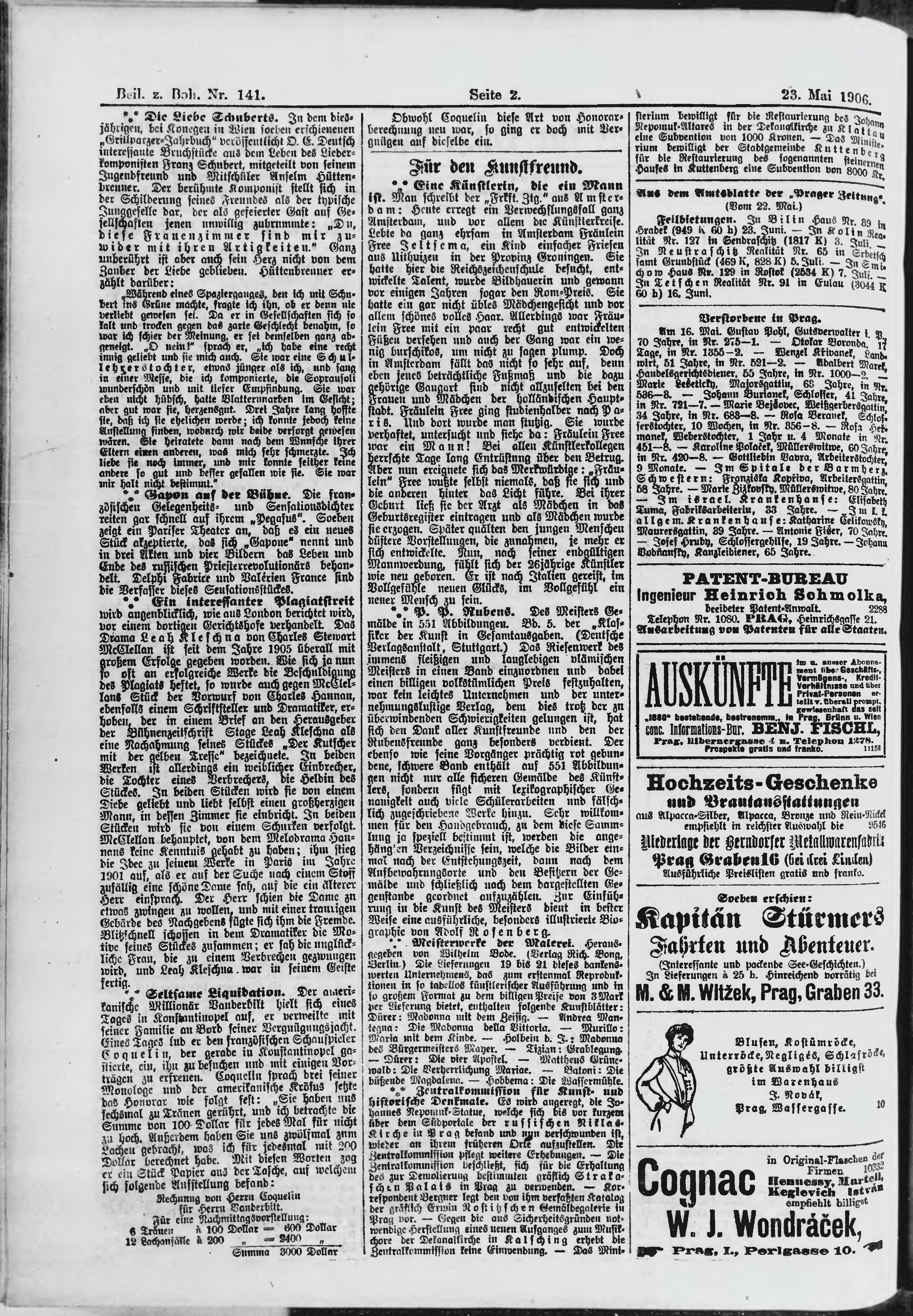 * Datum vydání výtisku: 23.5.1906 Číslo výtisku: 141 Typ výtisku: příloha