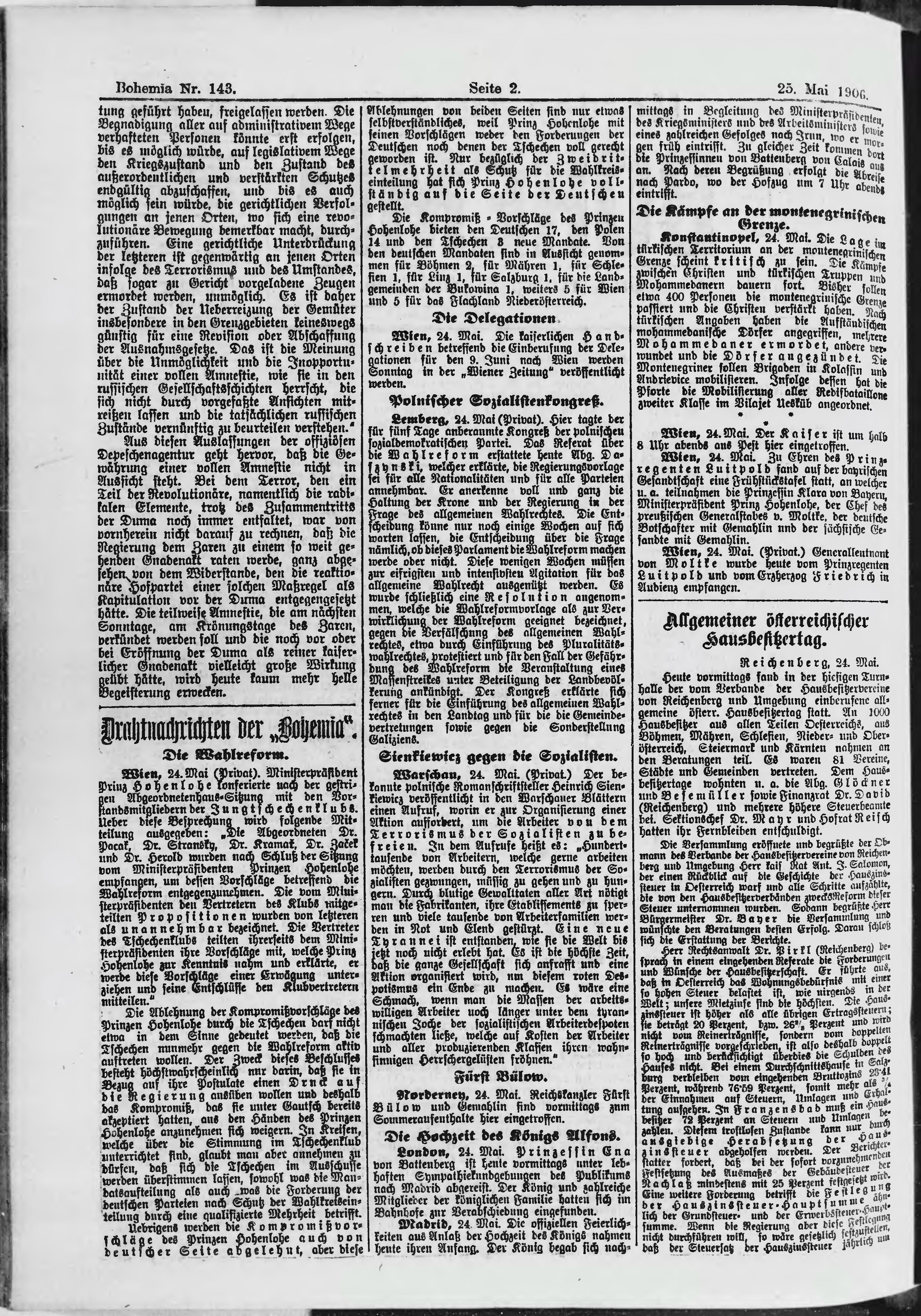 * Datum vydání výtisku: 25.5.1906 Číslo výtisku: 143 Poznámky k výtisku: ranní vydání;