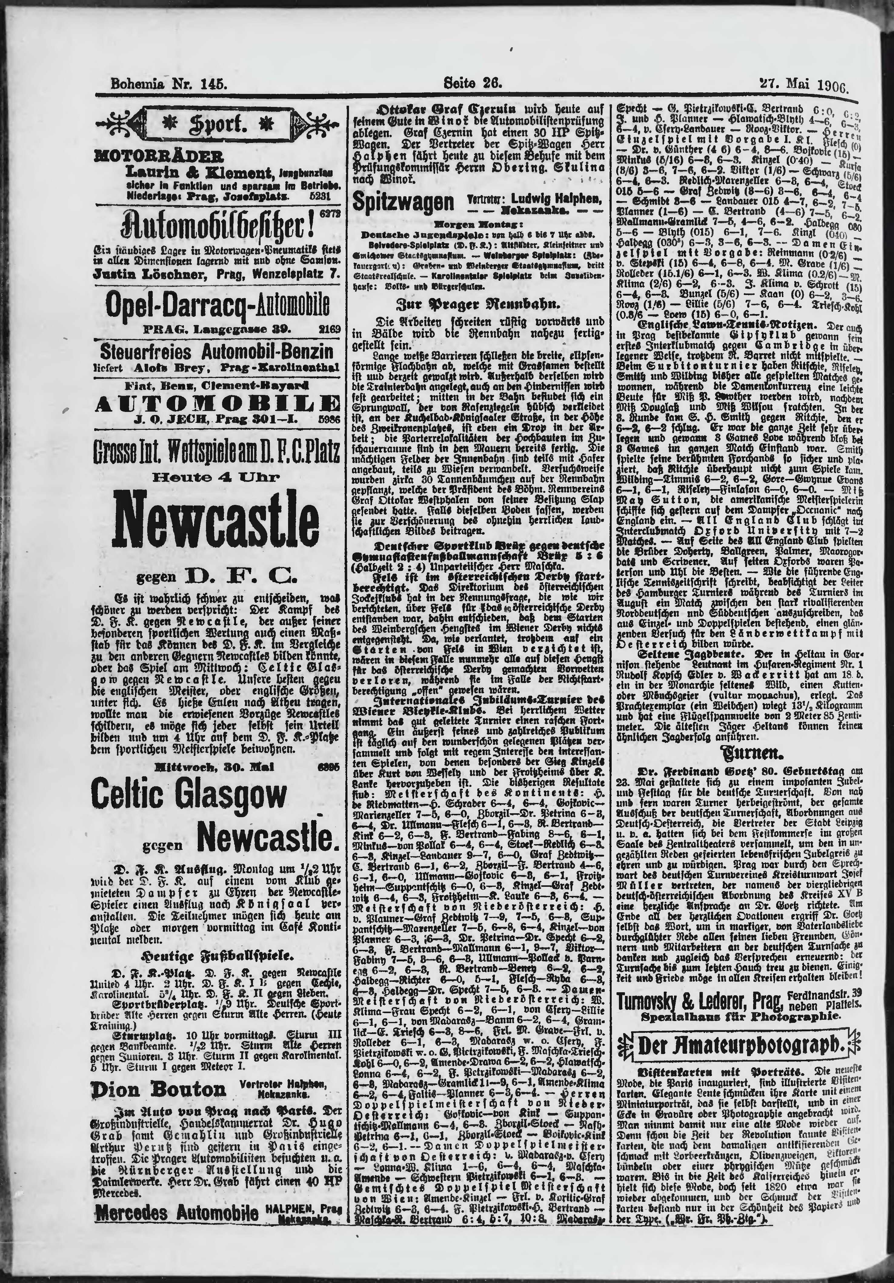 * Datum vydání výtisku: 27.5.1906 Číslo výtisku: 145 Poznámky k výtisku: ranní vydání;