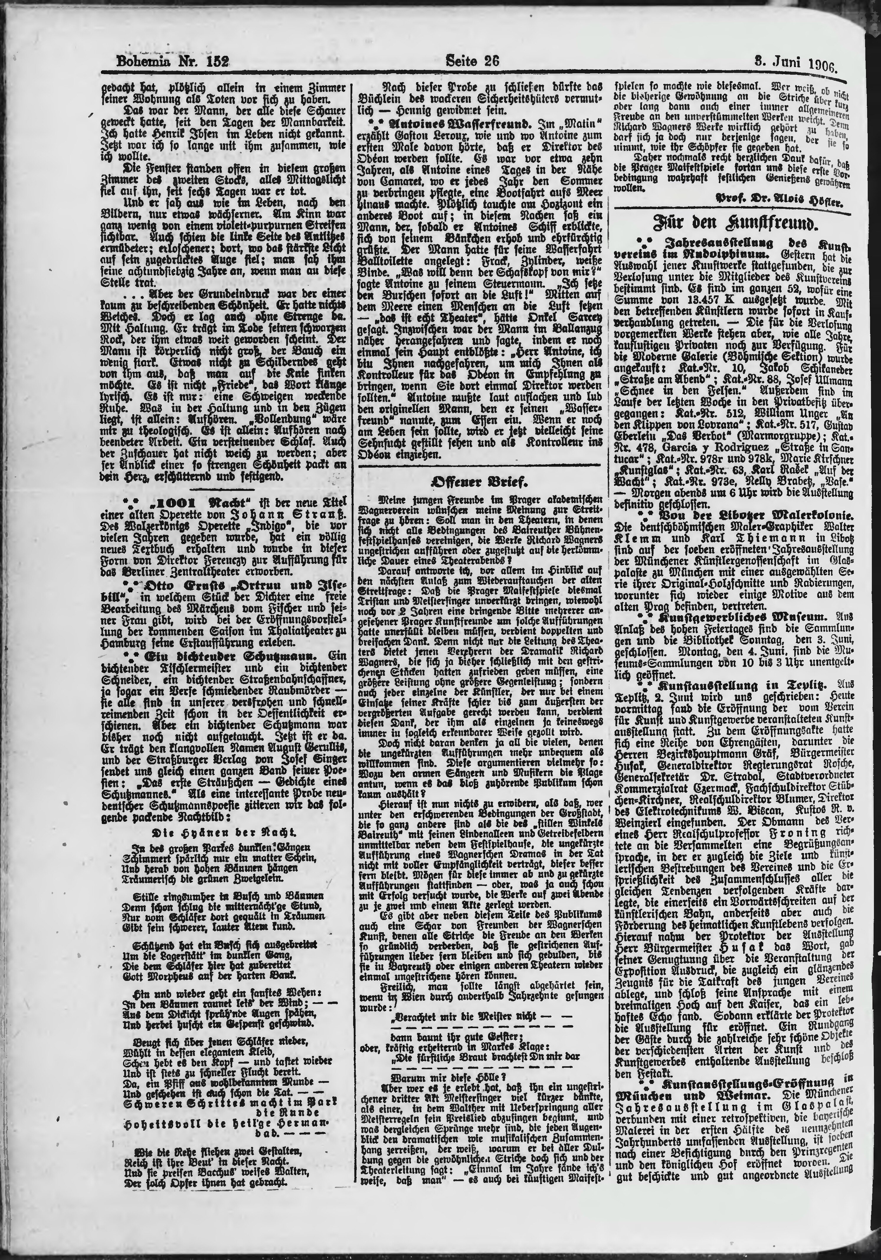 * Datum vydání výtisku: 3.6.1906 Číslo výtisku: 152 Poznámky k výtisku: ranní vydání;