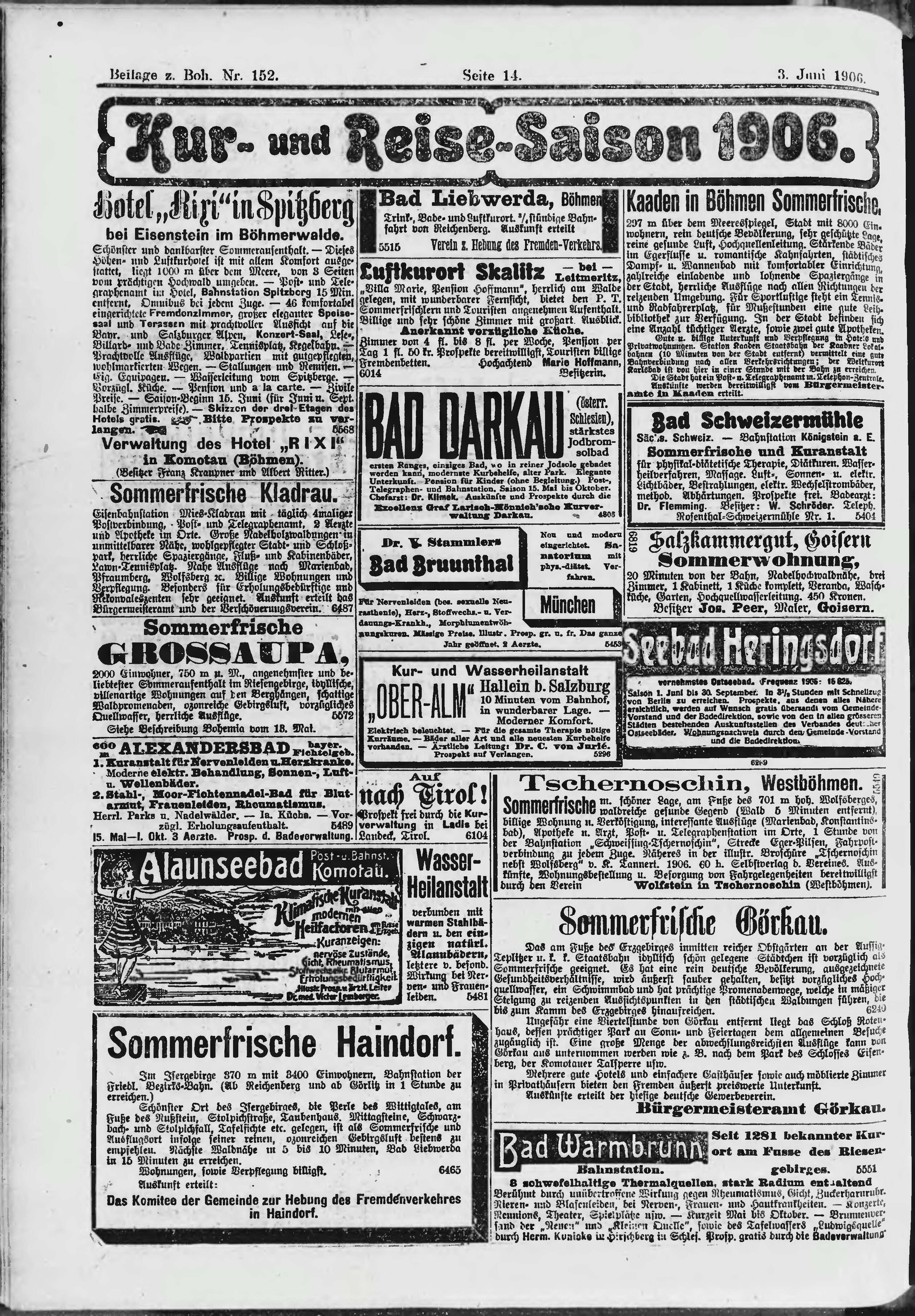 * Datum vydání výtisku: 3.6.1906 Číslo výtisku: 152 Typ výtisku: příloha