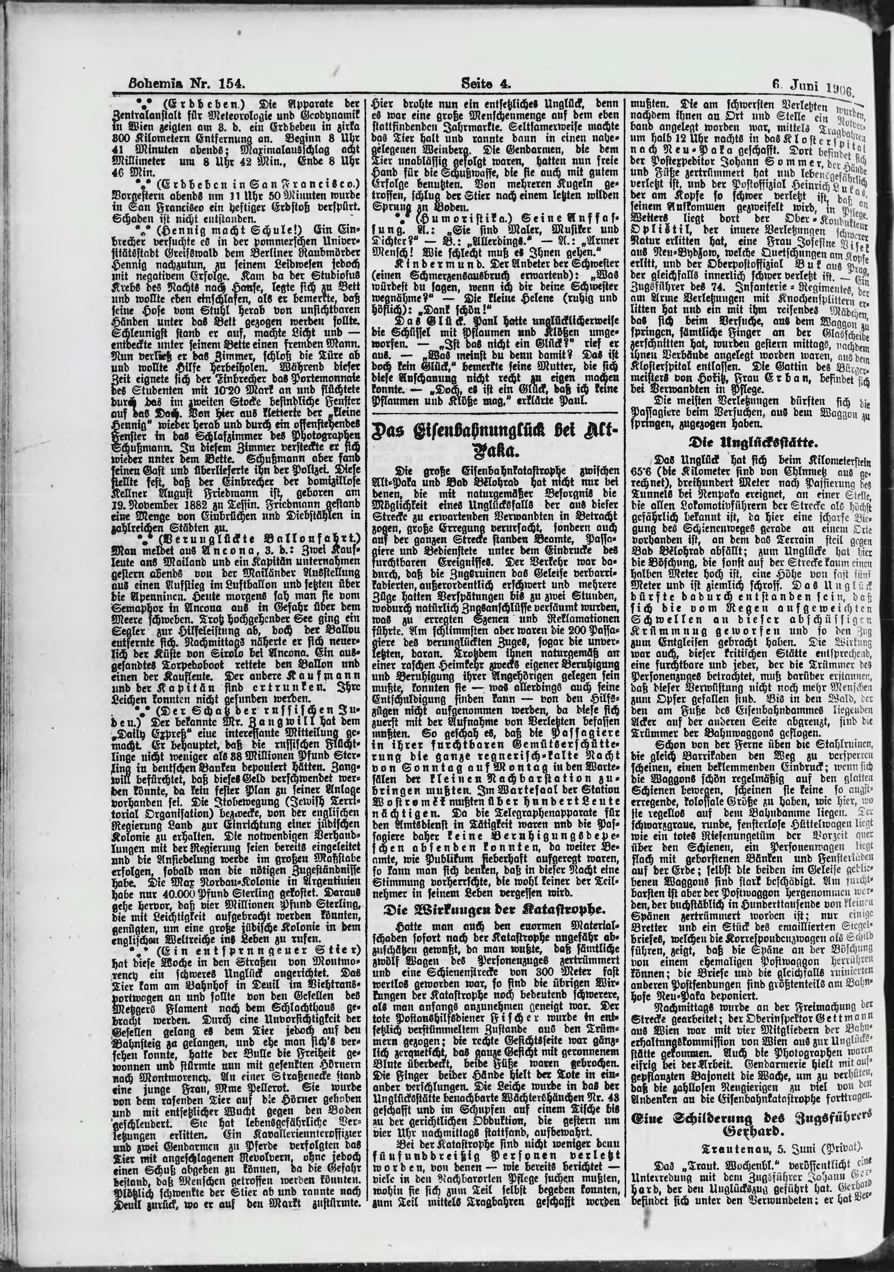 * Datum vydání výtisku: 6.6.1906 Číslo výtisku: 154 Poznámky k výtisku: ranní vydání;