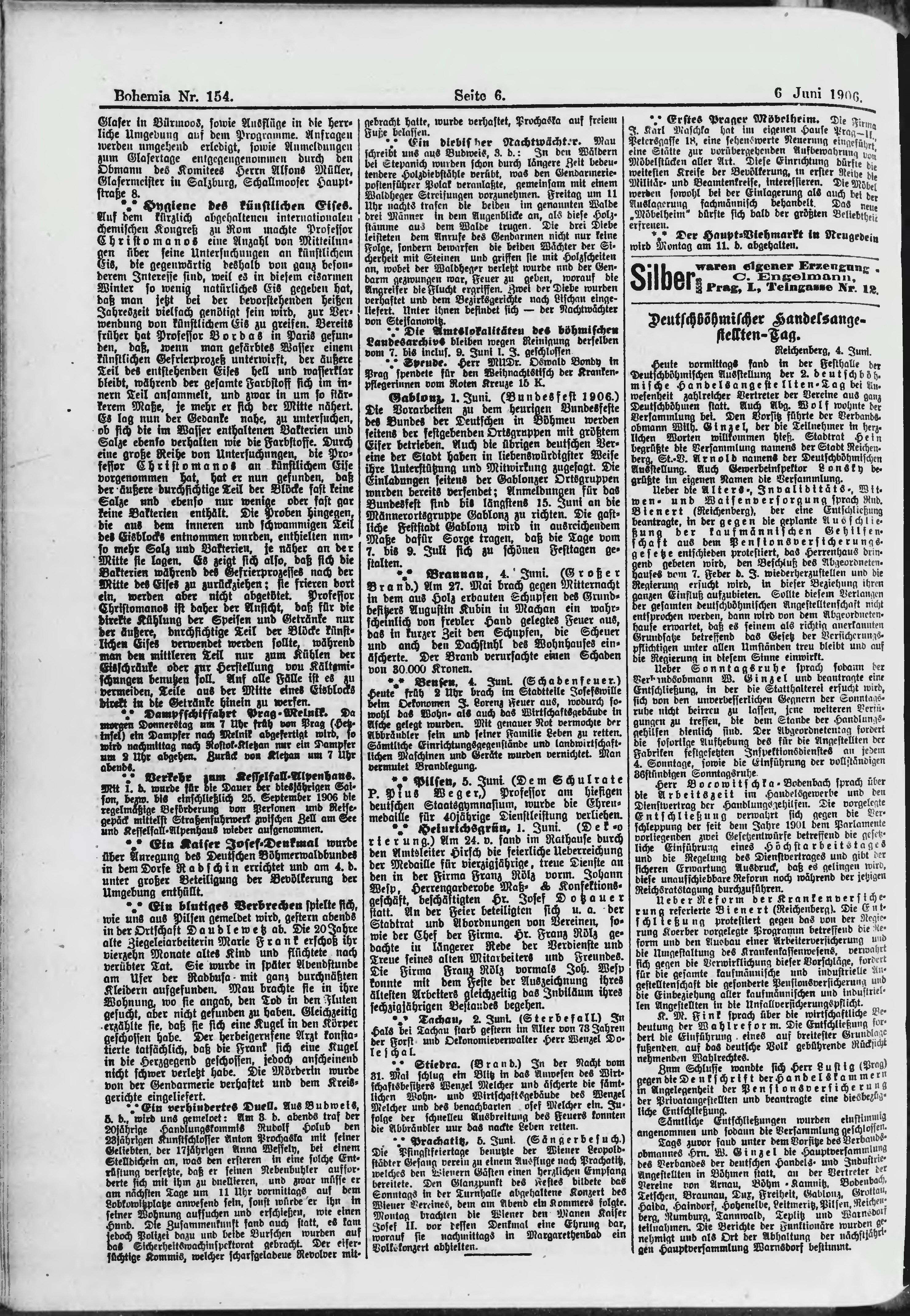 * Datum vydání výtisku: 6.6.1906 Číslo výtisku: 154 Poznámky k výtisku: ranní vydání;