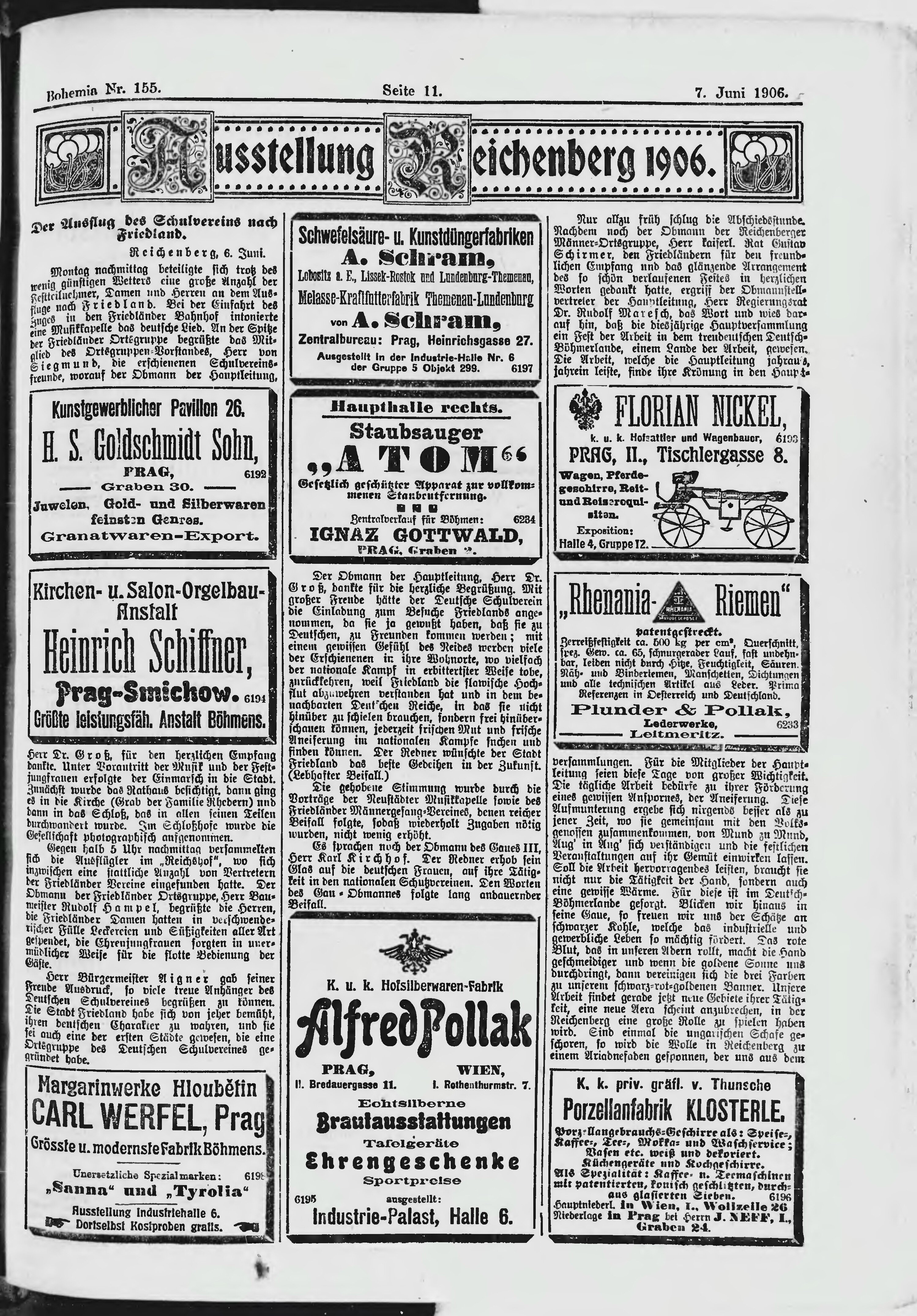 * Datum vydání výtisku: 7.6.1906 Číslo výtisku: 155 Poznámky k výtisku: ranní vydání;