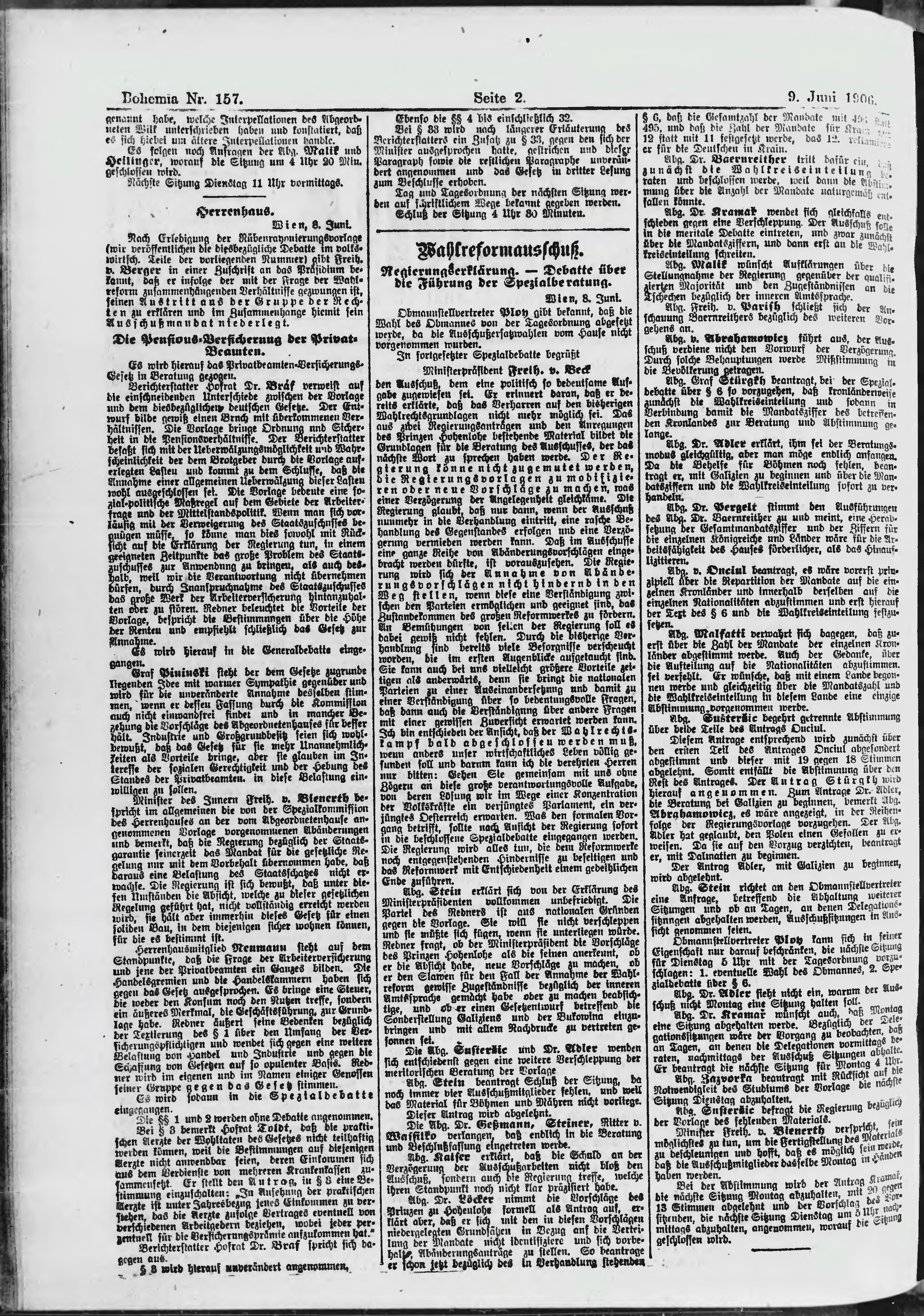 * Datum vydání výtisku: 9.6.1906 Číslo výtisku: 157 Poznámky k výtisku: ranní vydání;