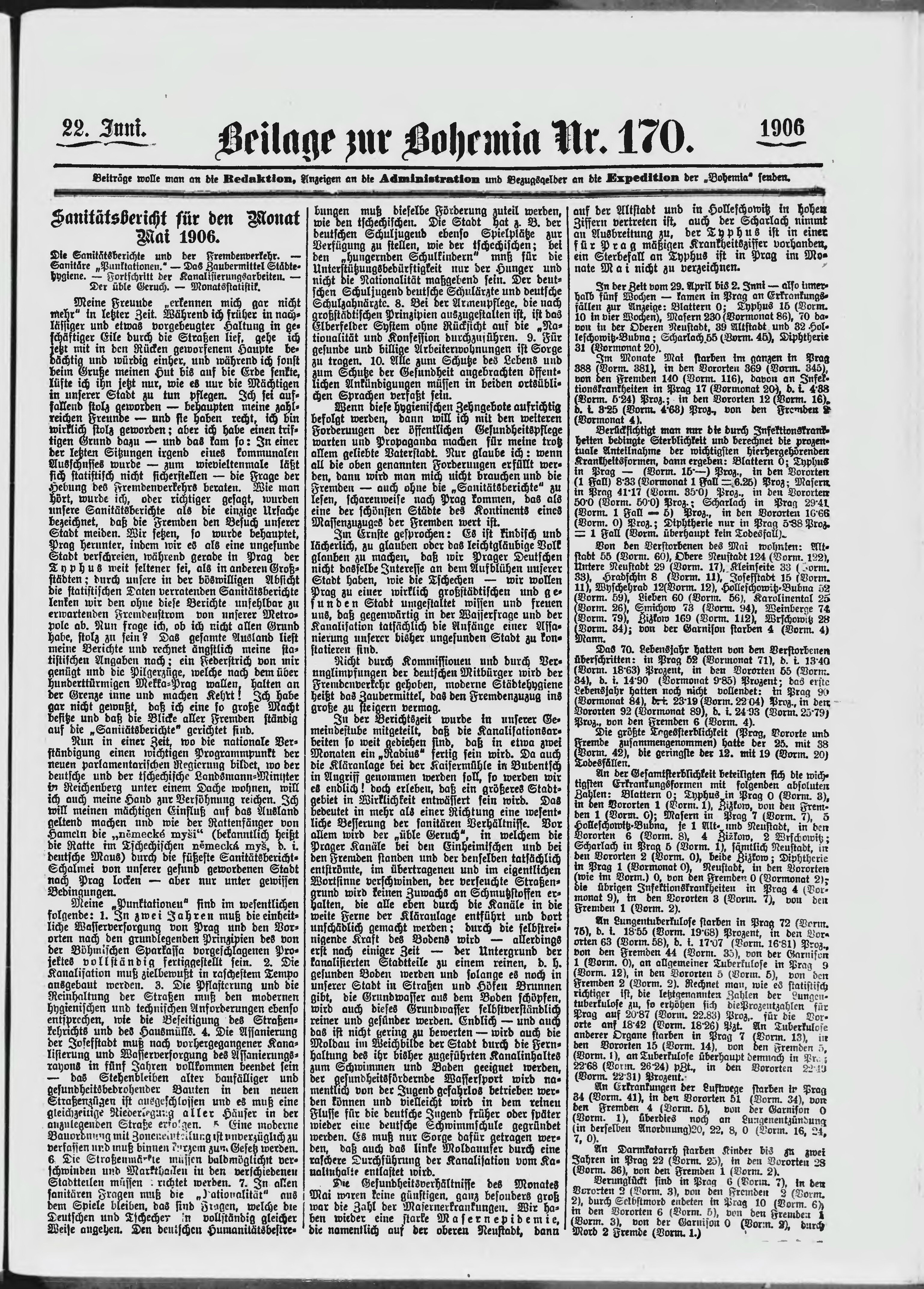* Datum vydání výtisku: 22.6.1906 Číslo výtisku: 170 Typ výtisku: příloha