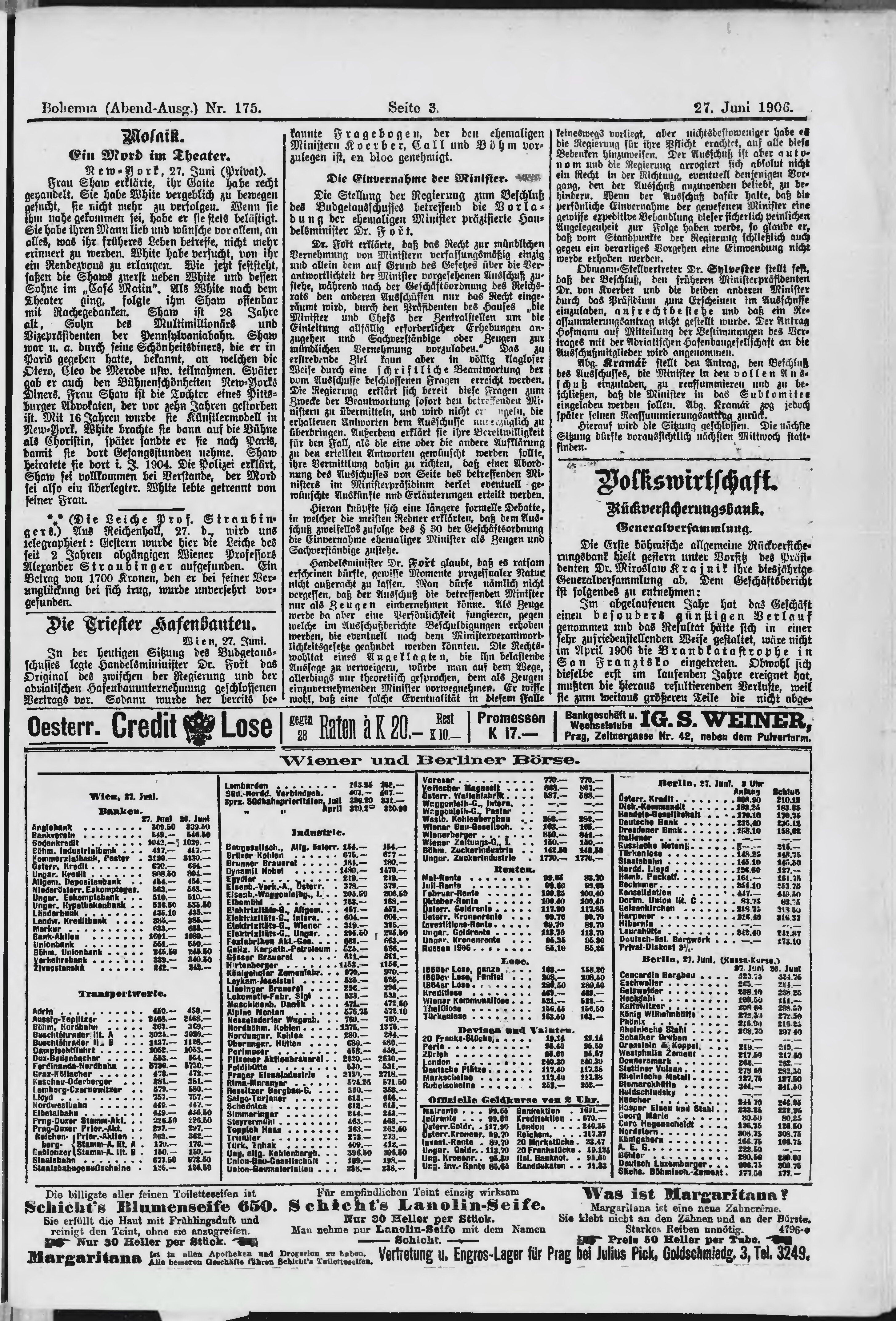 * Datum vydání výtisku: 27.6.1906 Číslo výtisku: 175 Poznámky k výtisku: večerní vydání;