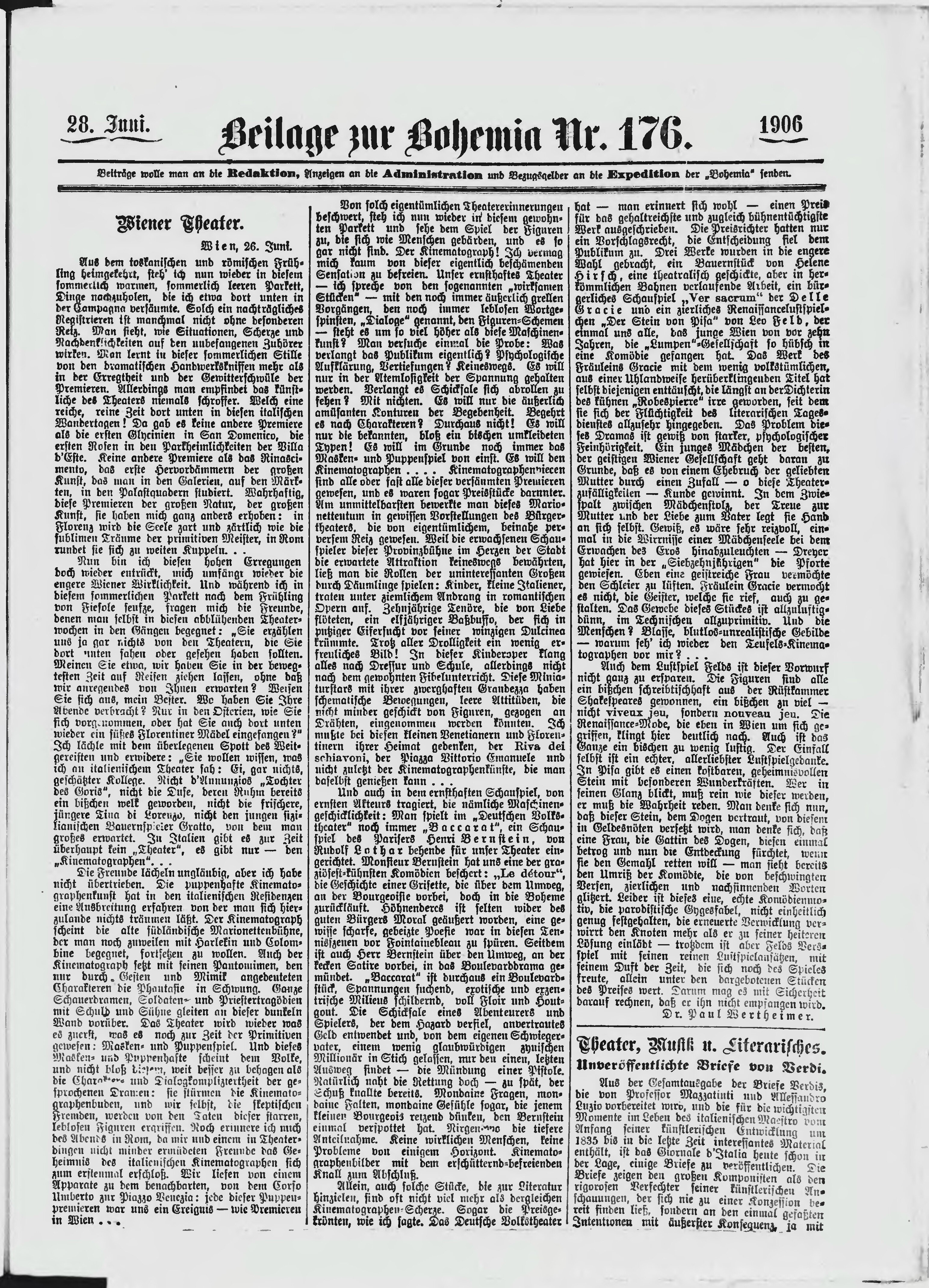 * Datum vydání výtisku: 28.6.1906 Číslo výtisku: 176 Typ výtisku: příloha