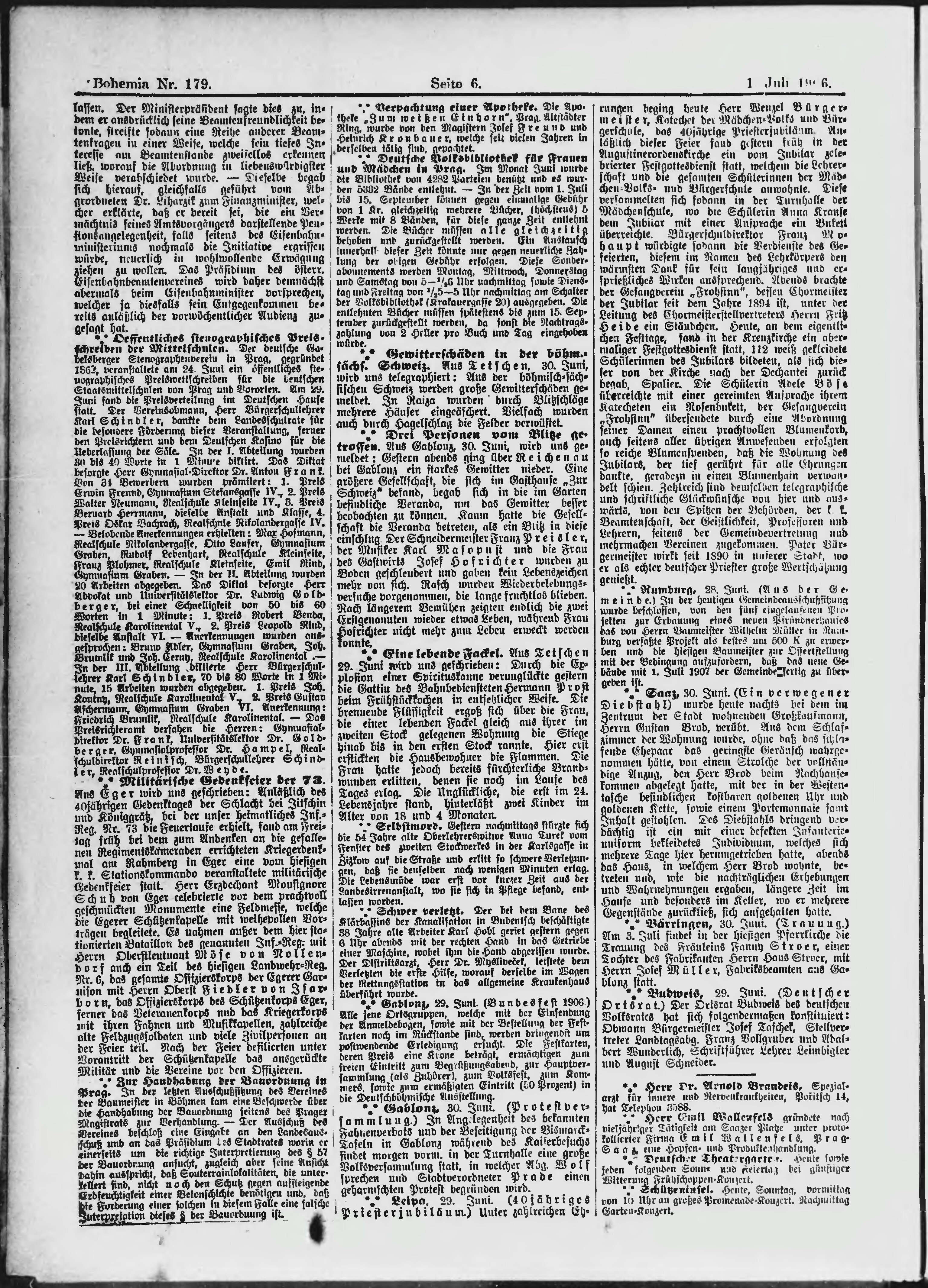 * Datum vydání výtisku: 1.7.1906 Číslo výtisku: 179 Poznámky k výtisku: ranní vydání;