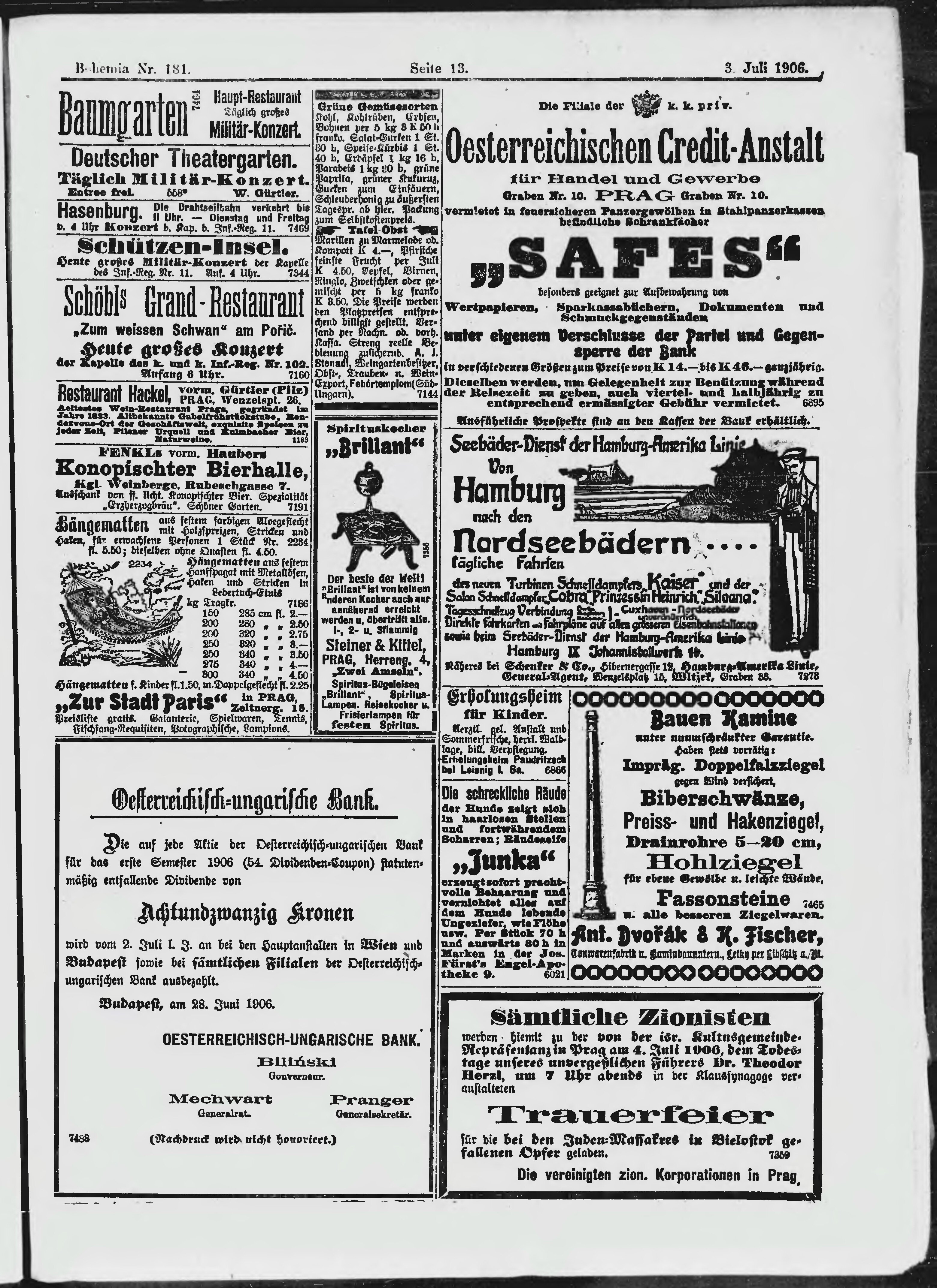 * Datum vydání výtisku: 3.7.1906 Číslo výtisku: 181 Poznámky k výtisku: ranní vydání;