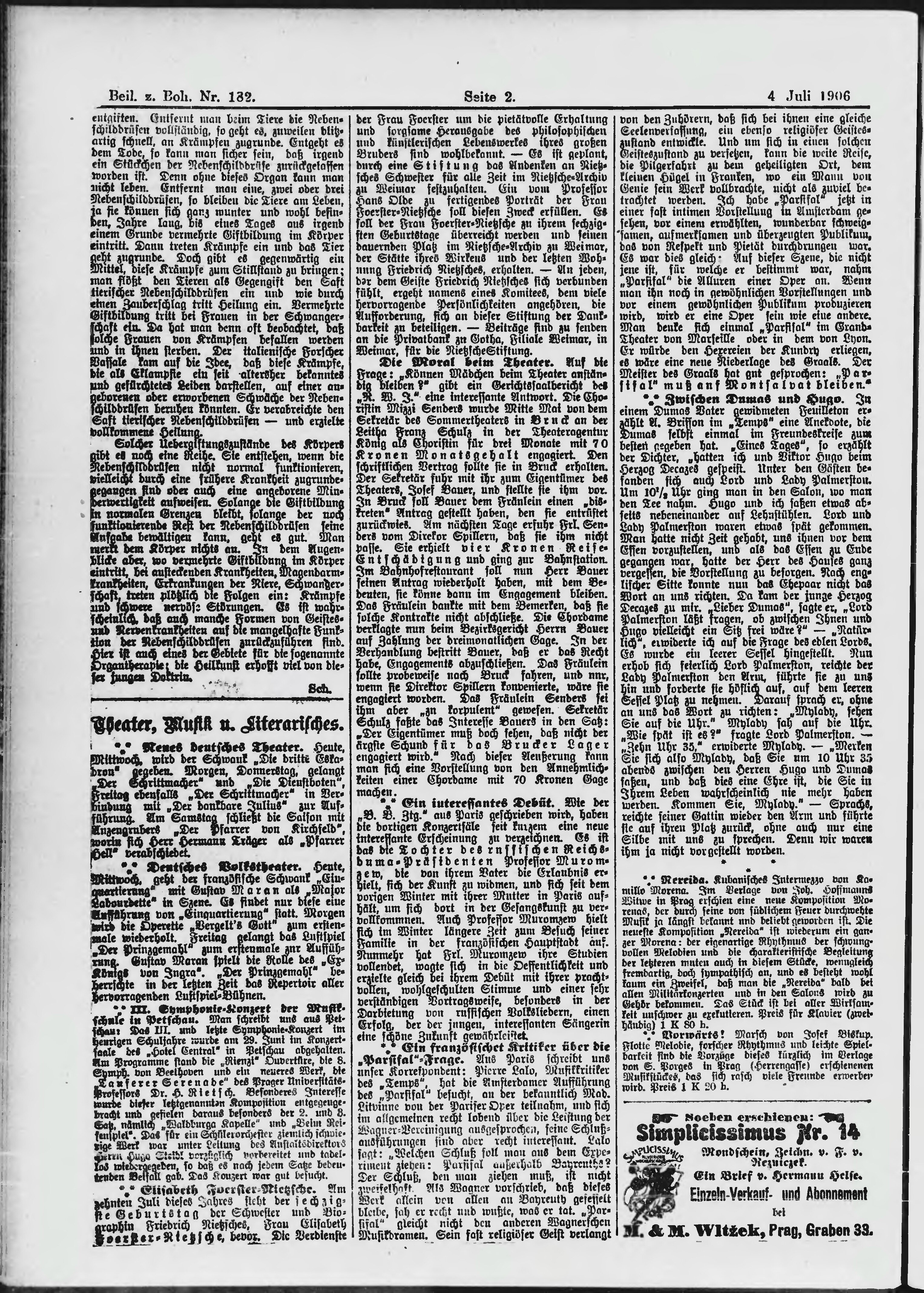* Datum vydání výtisku: 4.7.1906 Číslo výtisku: 182 Typ výtisku: příloha
