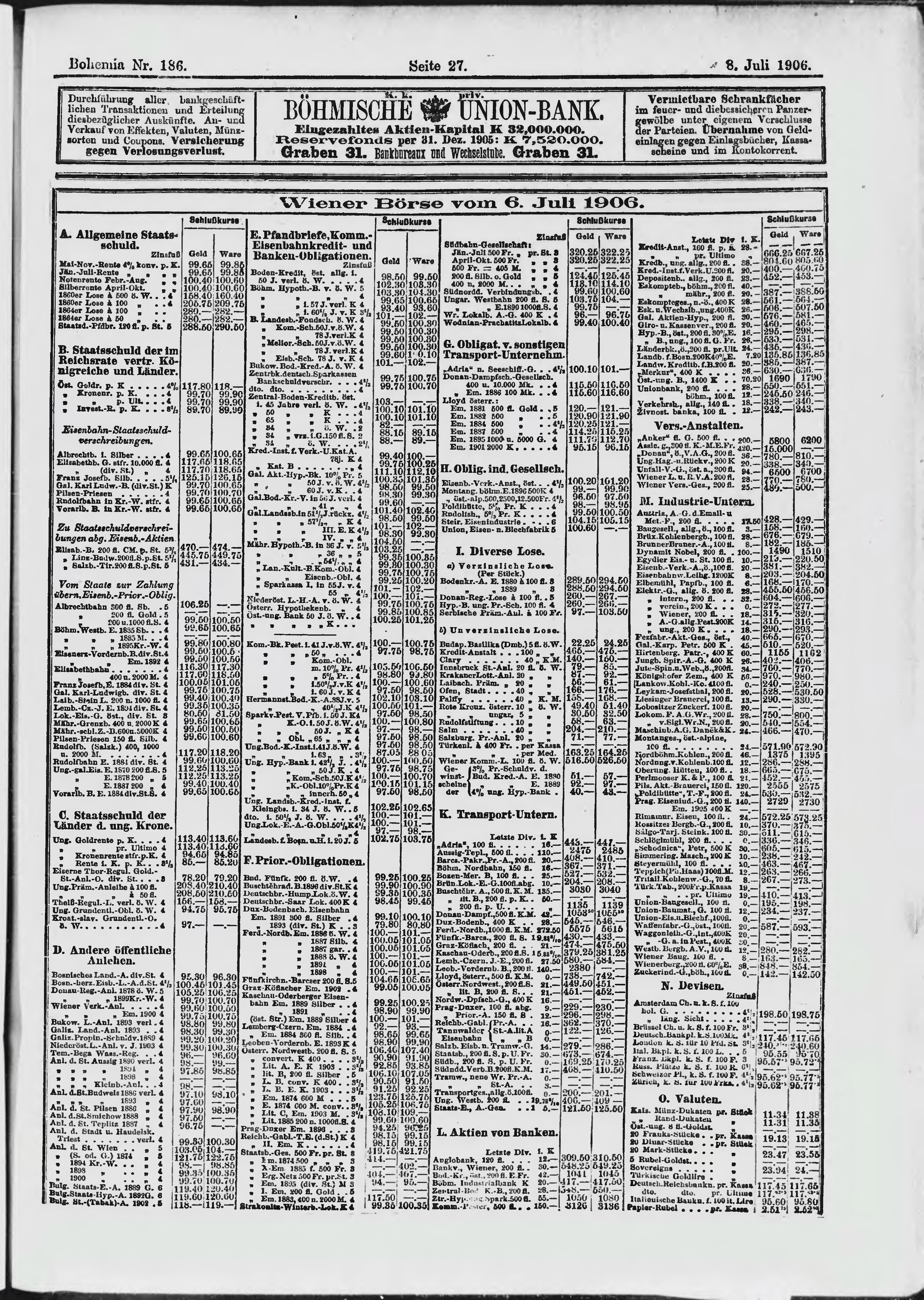 * Datum vydání výtisku: 8.7.1906 Číslo výtisku: 186 Poznámky k výtisku: ranní vydání;