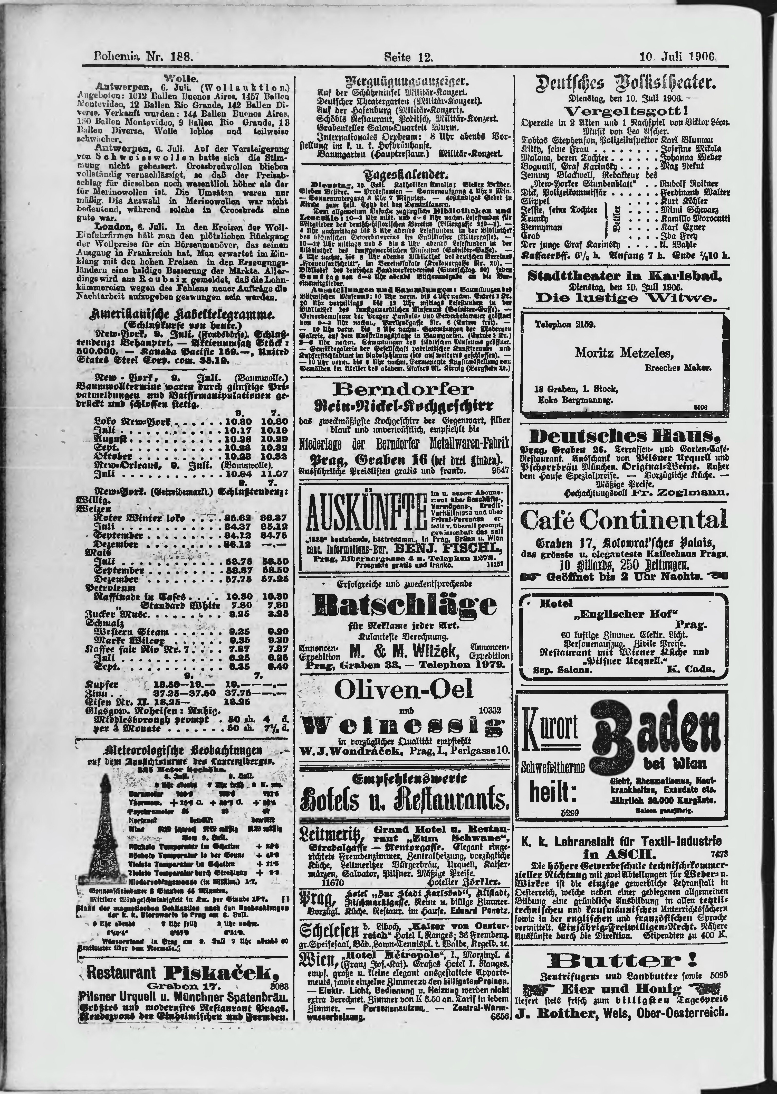 * Datum vydání výtisku: 10.7.1906 Číslo výtisku: 188 Poznámky k výtisku: ranní vydání;