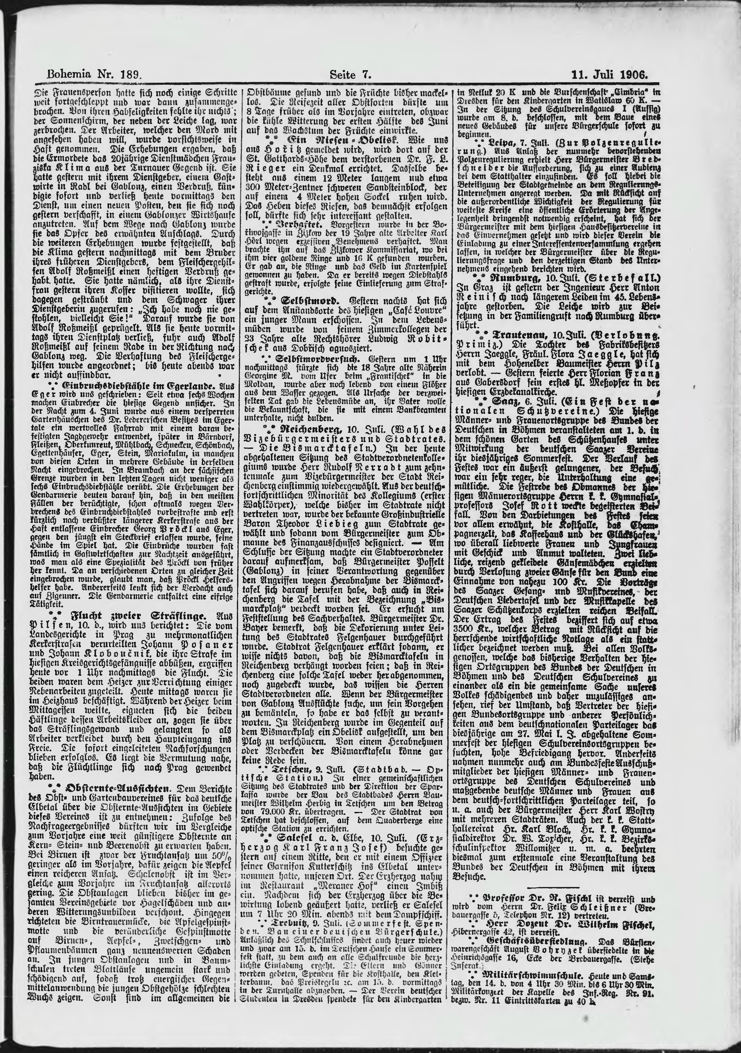 * Datum vydání výtisku: 11.7.1906 Číslo výtisku: 189 Poznámky k výtisku: ranní vydání;