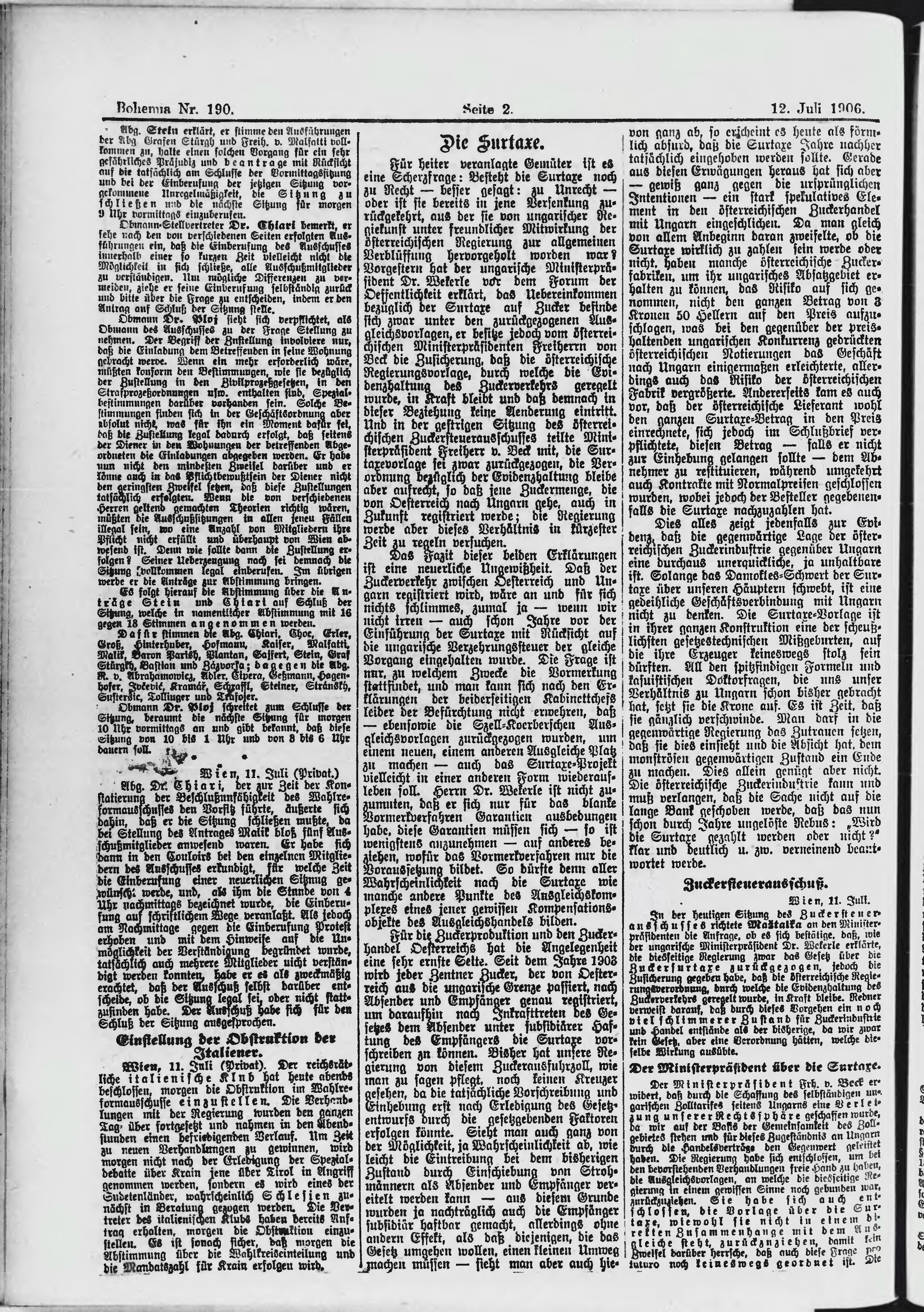 * Datum vydání výtisku: 12.7.1906 Číslo výtisku: 190 Poznámky k výtisku: ranní vydání;
