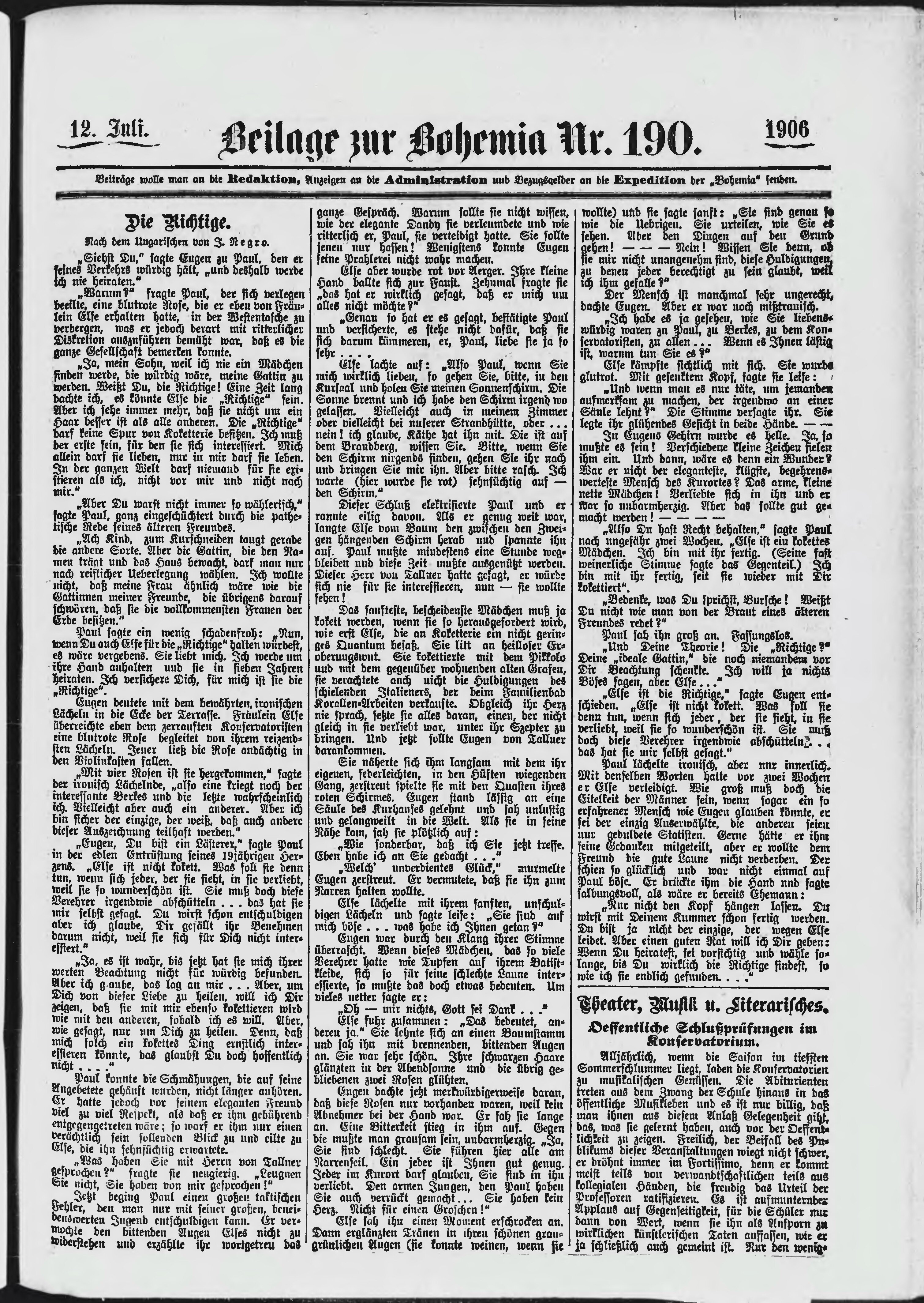 * Datum vydání výtisku: 12.7.1906 Číslo výtisku: 190 Typ výtisku: příloha