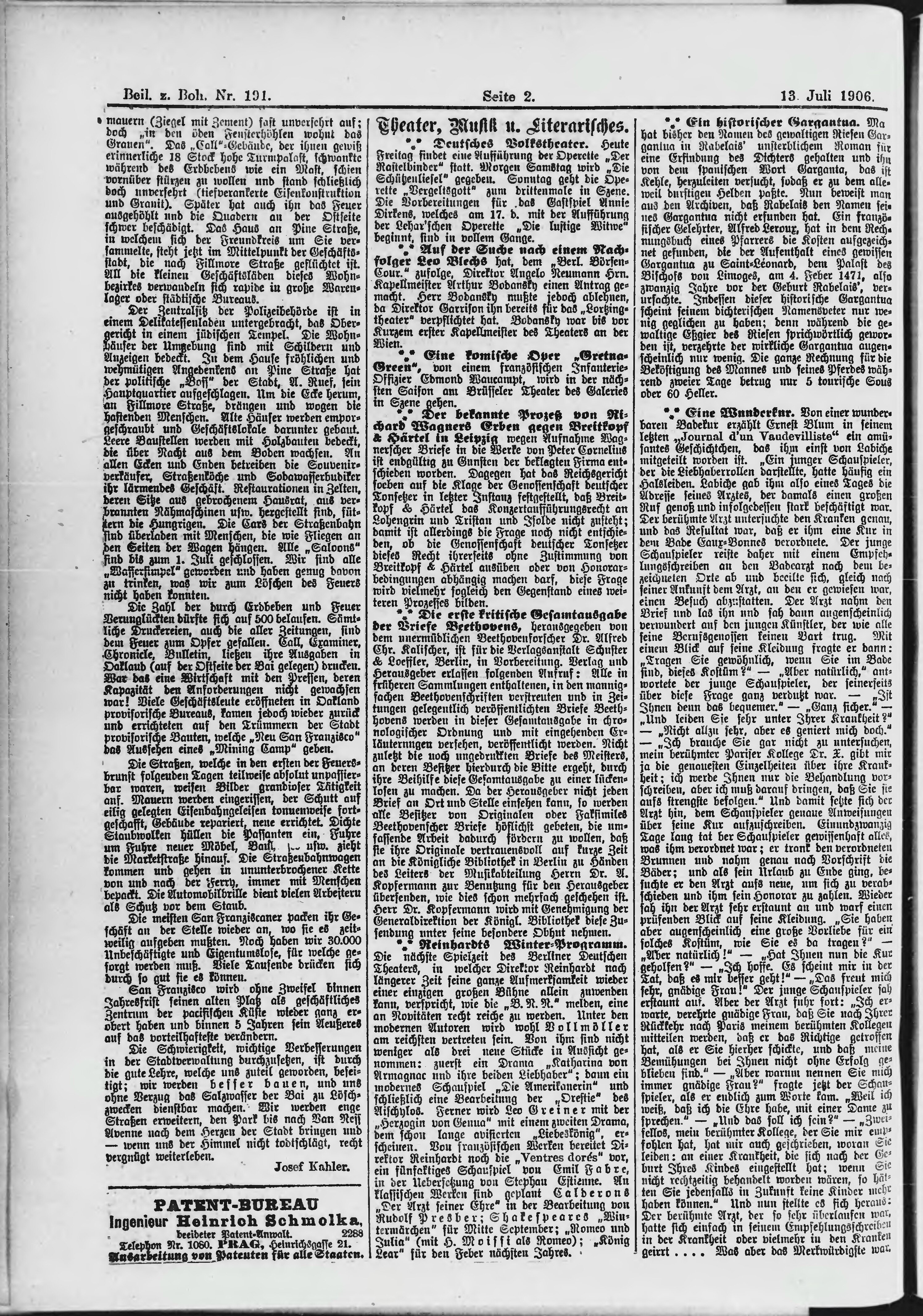 * Datum vydání výtisku: 13.7.1906 Číslo výtisku: 191 Typ výtisku: příloha