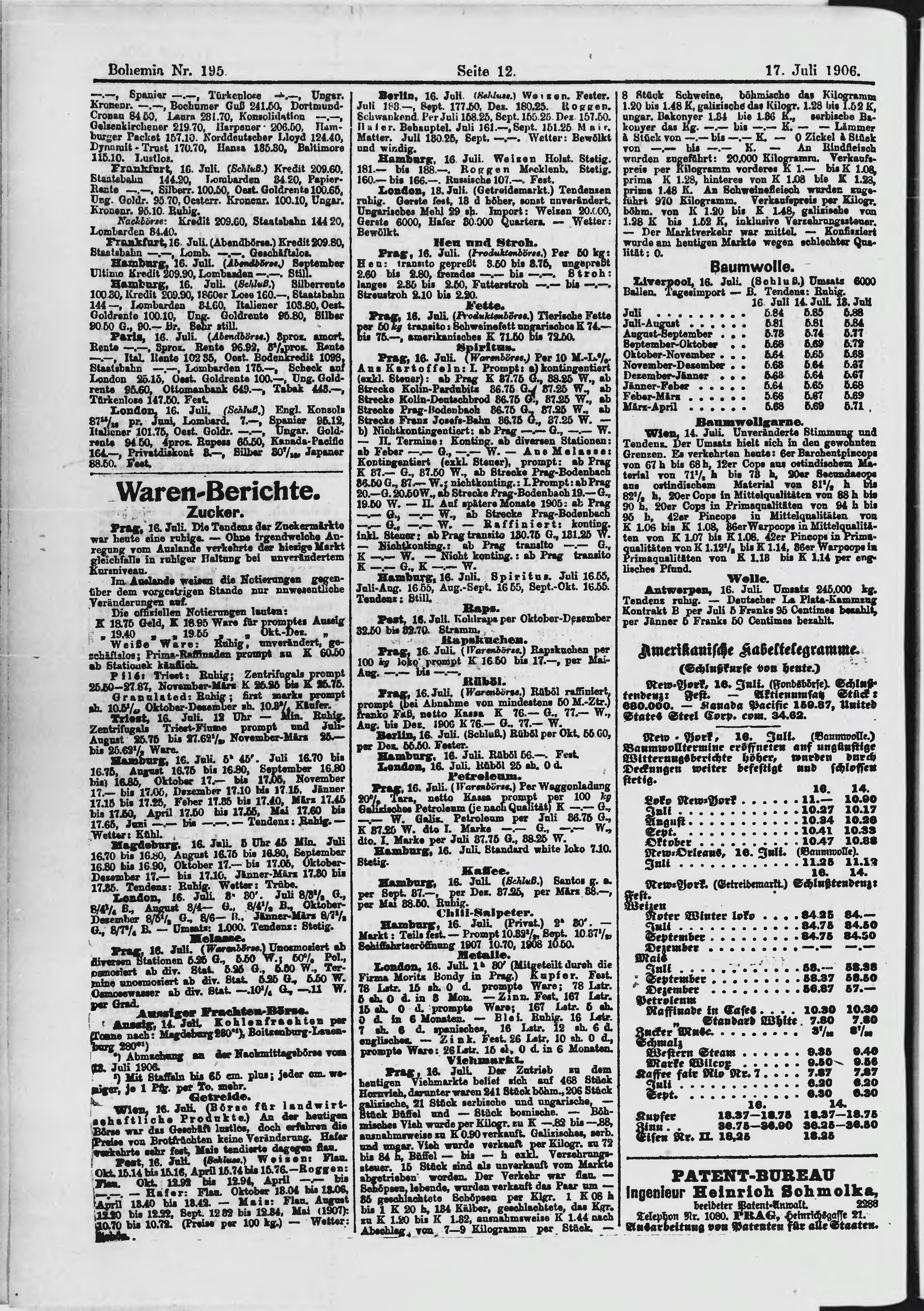 * Datum vydání výtisku: 17.7.1906 Číslo výtisku: 195 Poznámky k výtisku: ranní vydání;