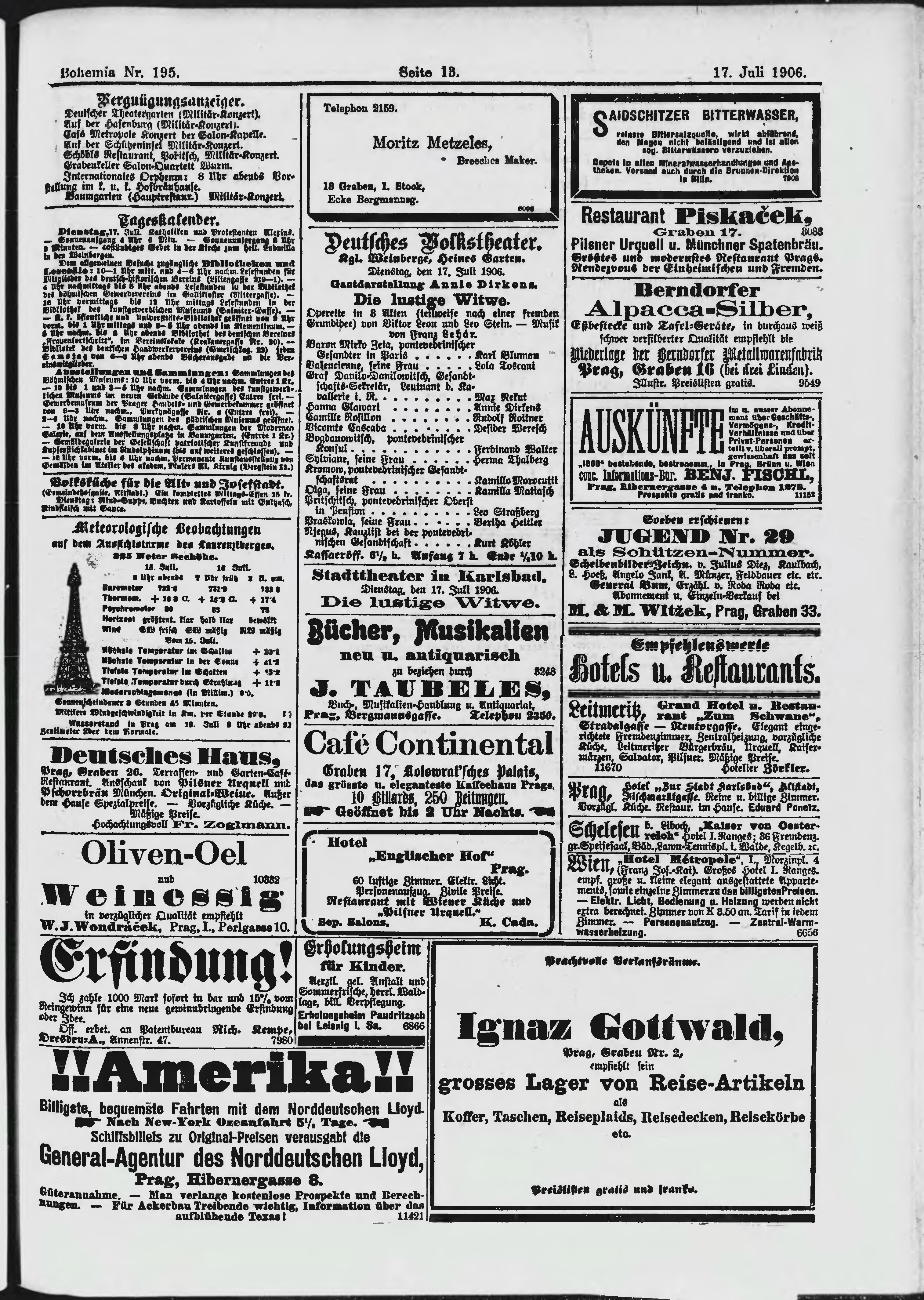 * Datum vydání výtisku: 17.7.1906 Číslo výtisku: 195 Poznámky k výtisku: ranní vydání;