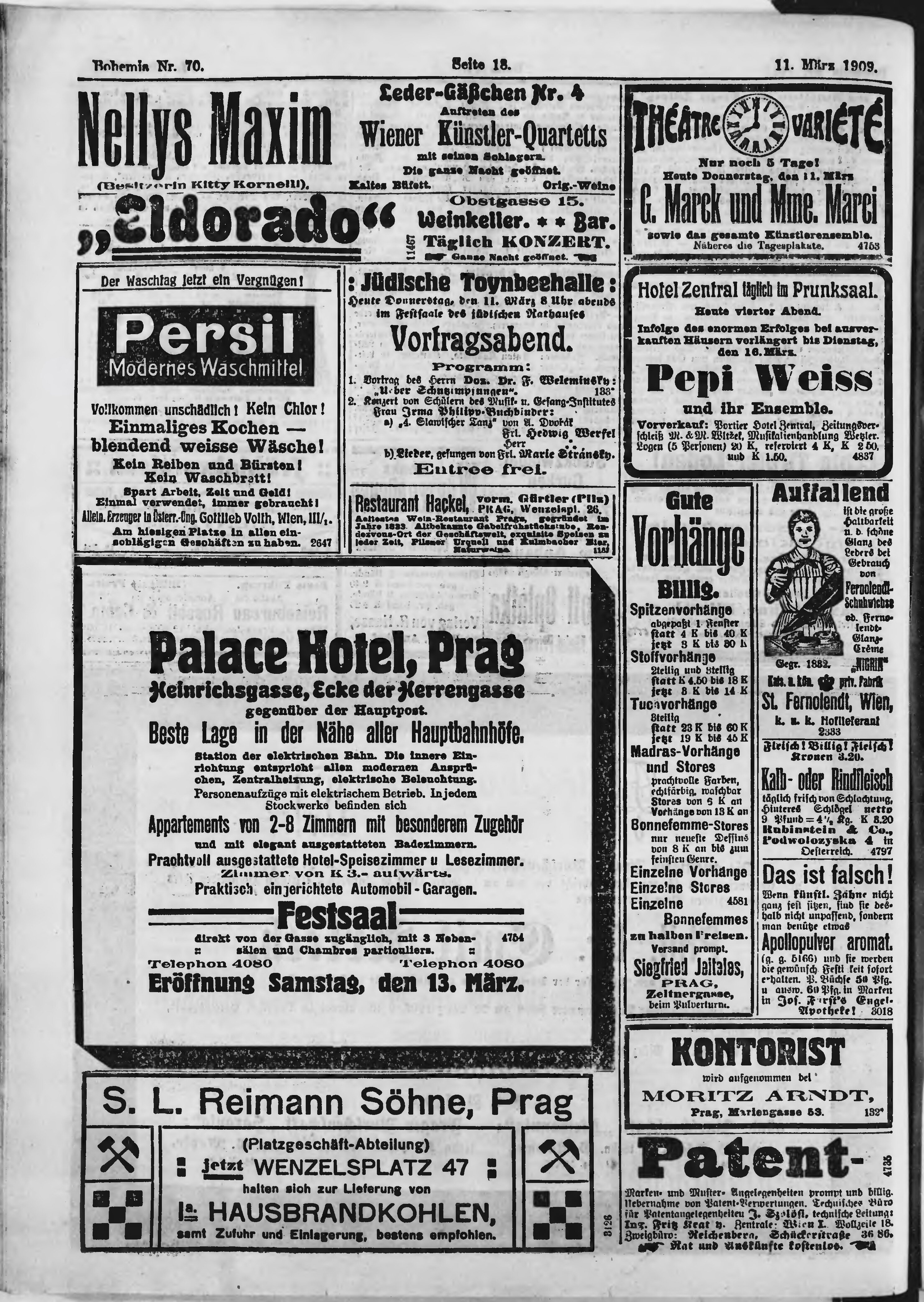* Datum vydání výtisku: 11.3.1909 Číslo výtisku: 70 Poznámky k výtisku: ranní vydání;