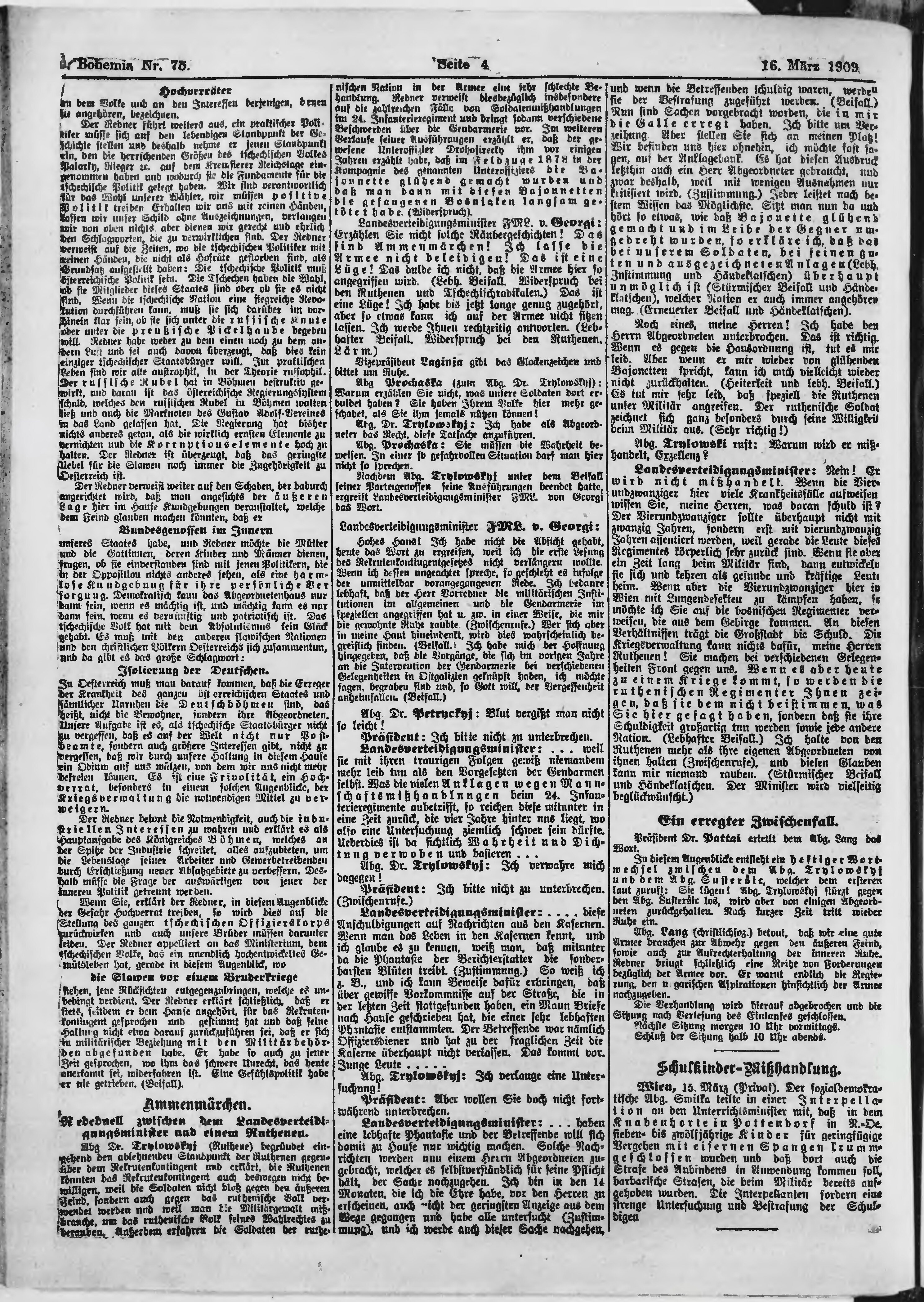 * Datum vydání výtisku: 16.3.1909 Číslo výtisku: 75 Poznámky k výtisku: ranní vydání;