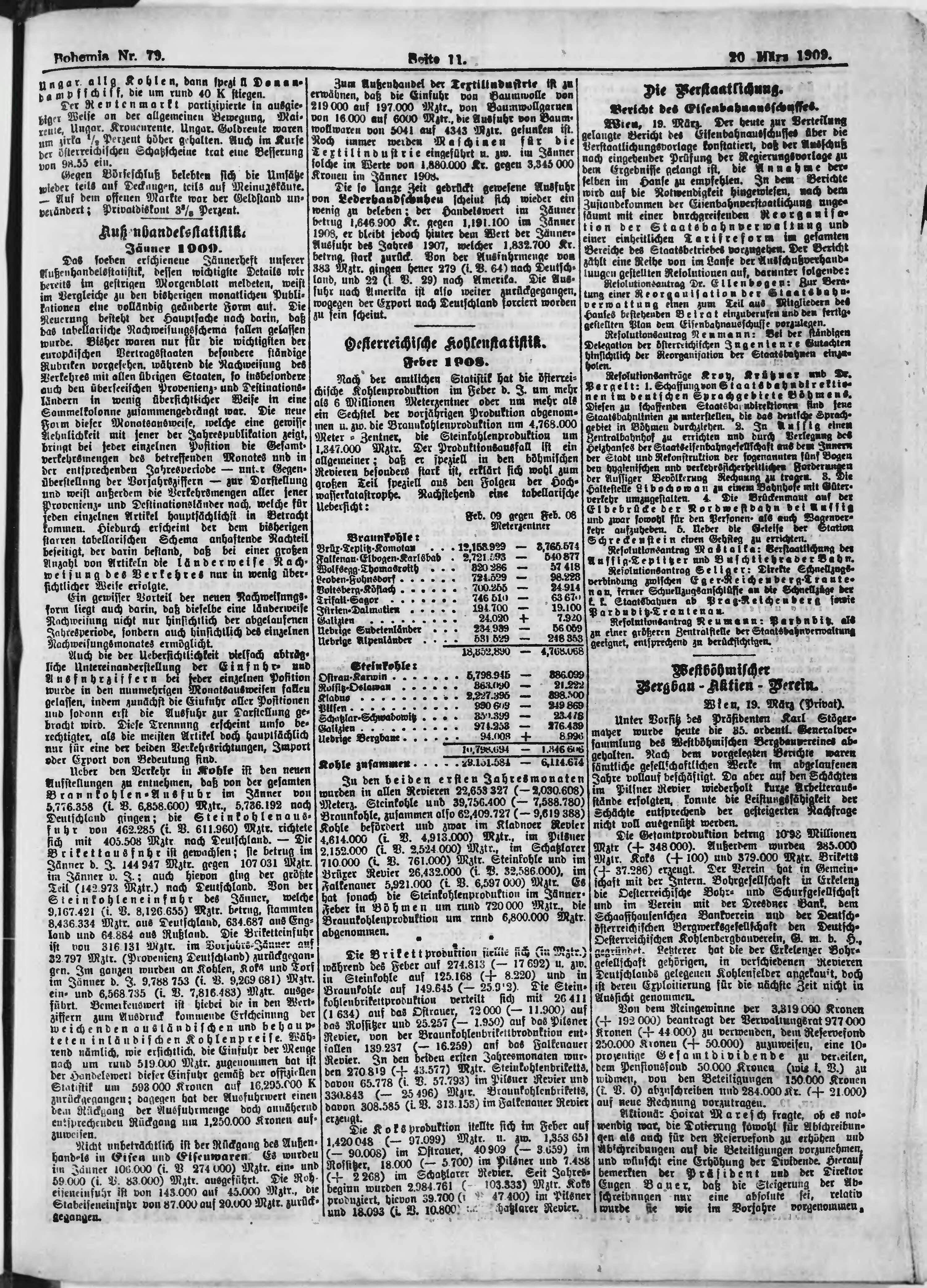 * Datum vydání výtisku: 20.3.1909 Číslo výtisku: 79 Poznámky k výtisku: ranní vydání;