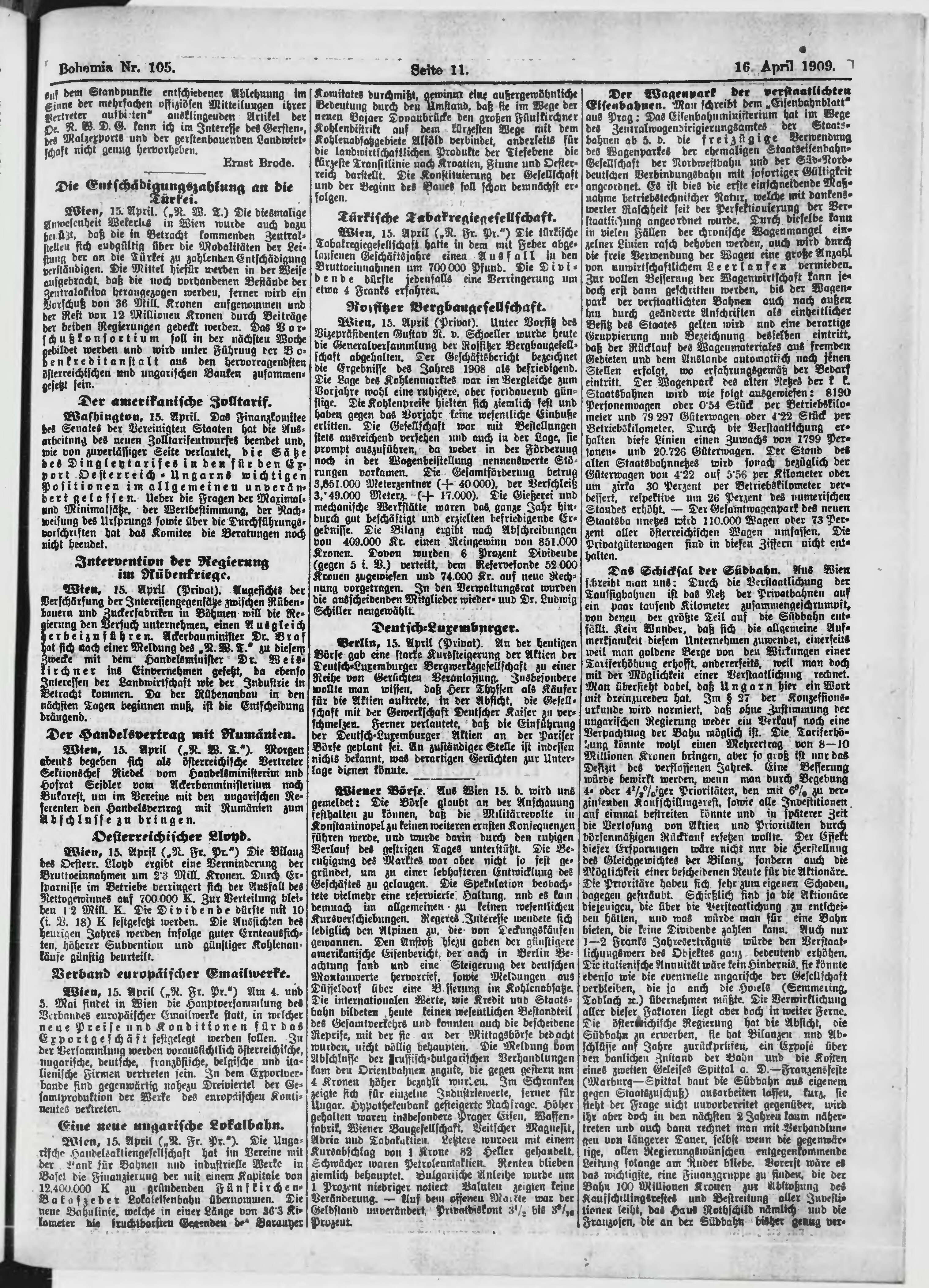 * Datum vydání výtisku: 16.4.1909 Číslo výtisku: 105 Poznámky k výtisku: ranní vydání;
