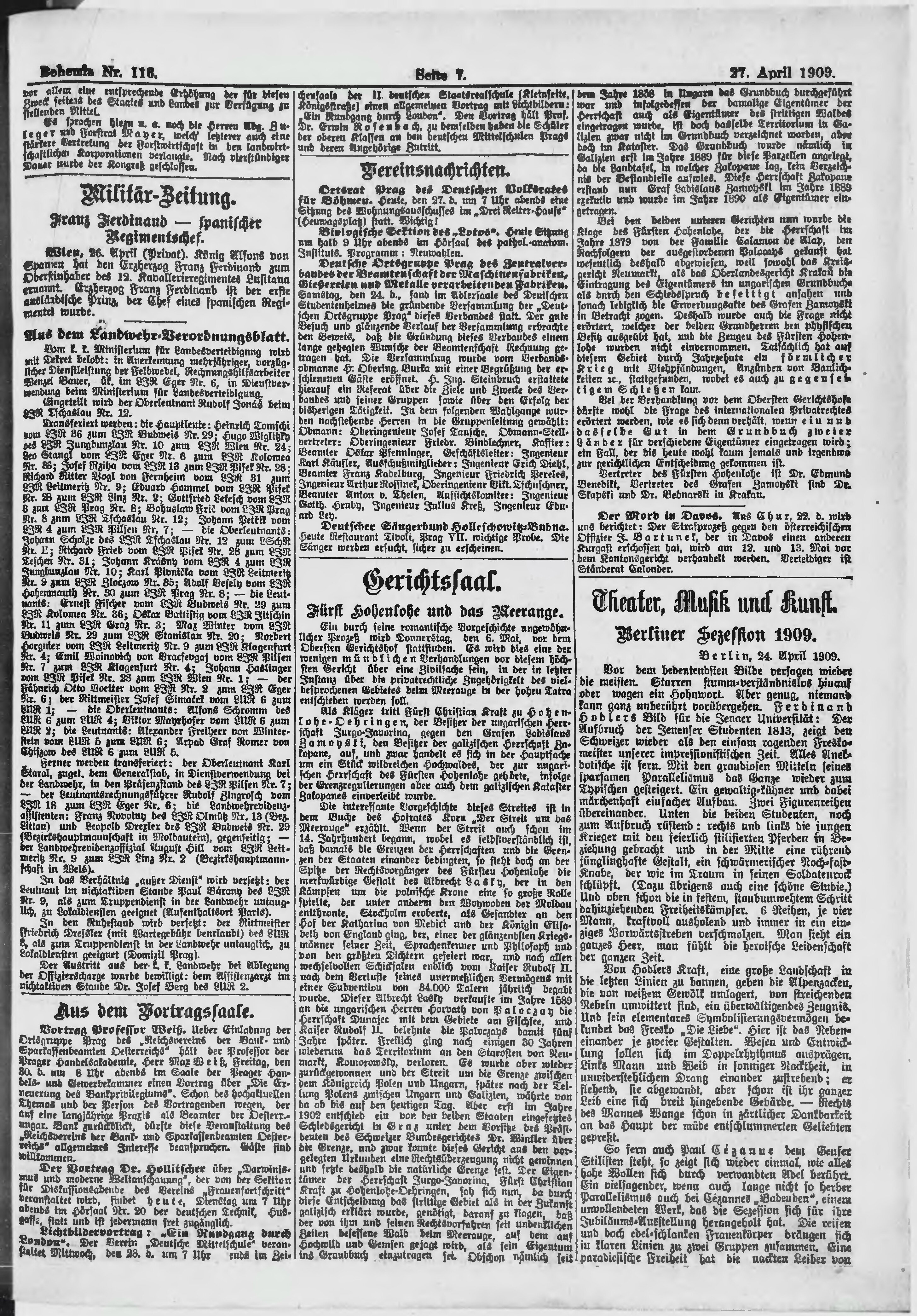 * Datum vydání výtisku: 27.4.1909 Číslo výtisku: 116 Poznámky k výtisku: ranní vydání;