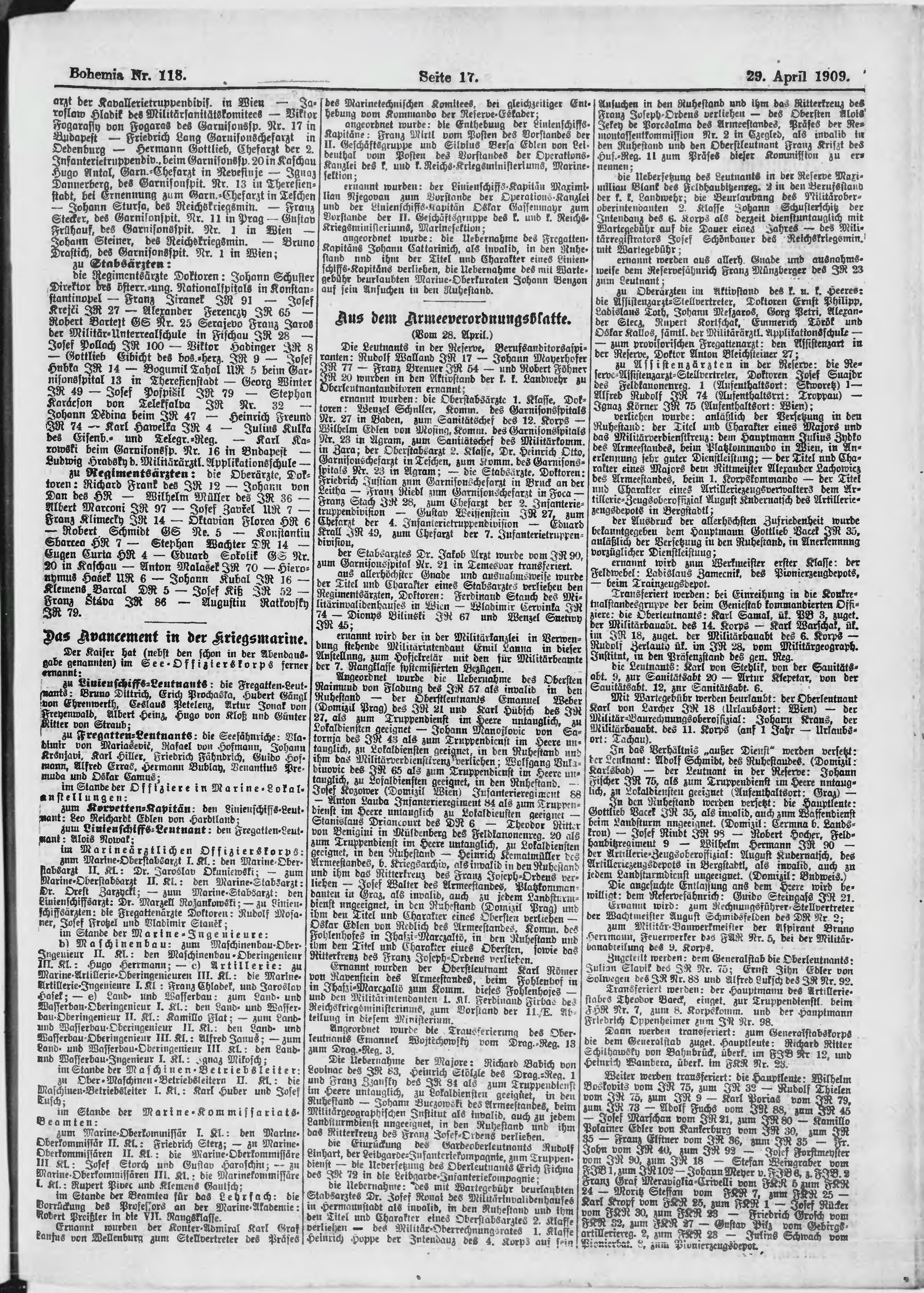 * Datum vydání výtisku: 29.4.1909 Číslo výtisku: 118 Poznámky k výtisku: ranní vydání;