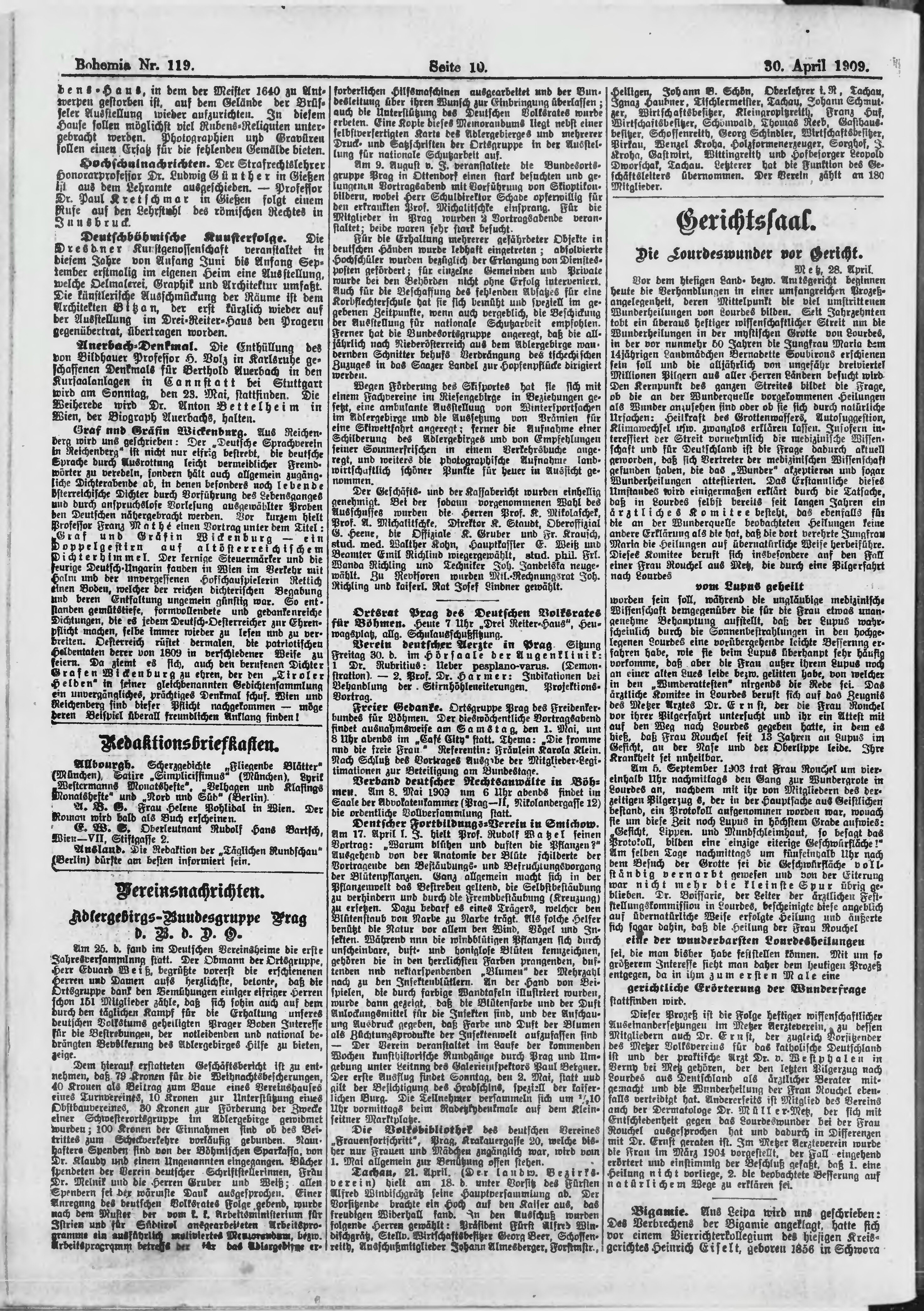 * Datum vydání výtisku: 30.4.1909 Číslo výtisku: 119 Poznámky k výtisku: s. 13, 14 není k dispozici