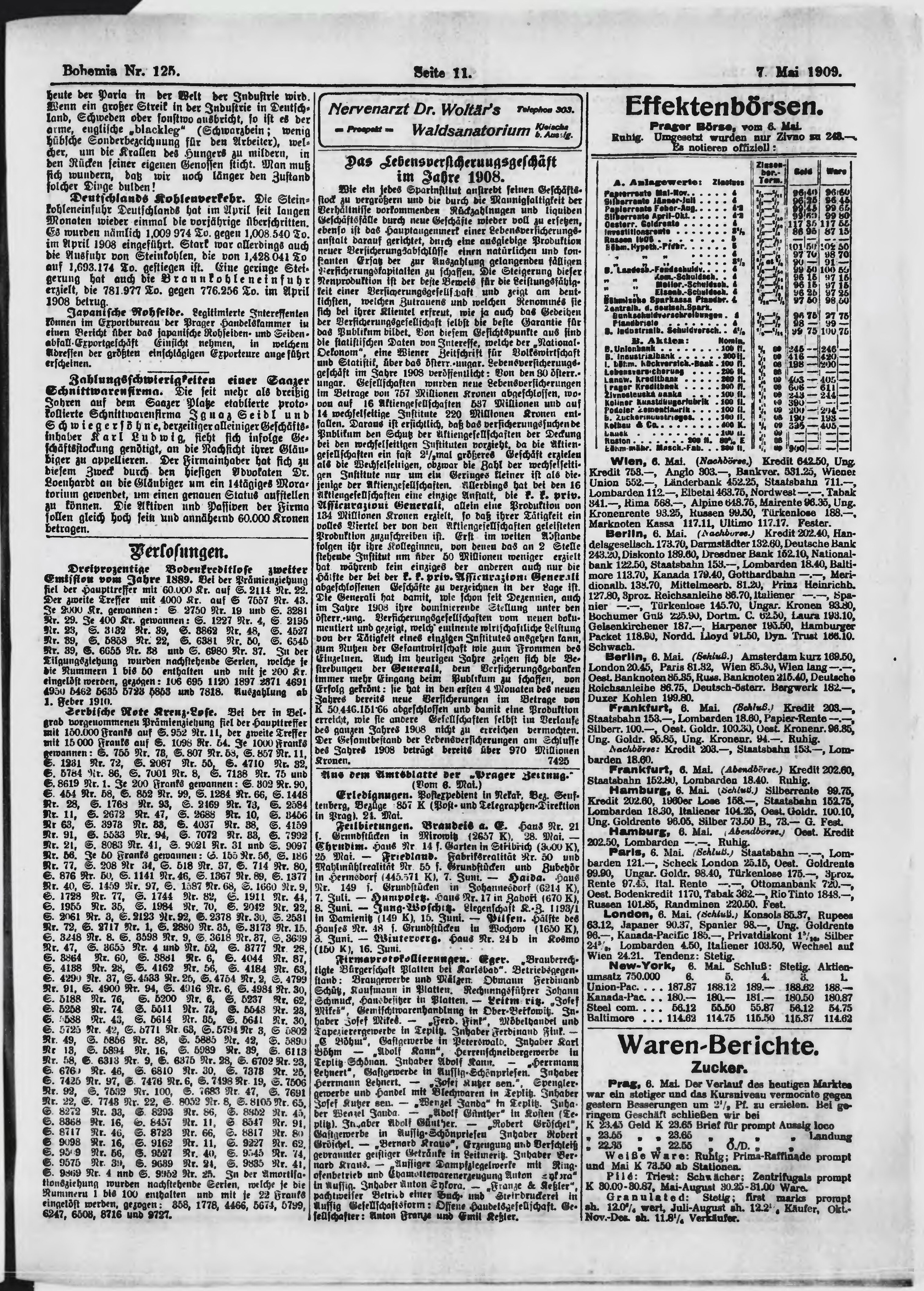 * Datum vydání výtisku: 7.5.1909 Číslo výtisku: 125 Poznámky k výtisku: ranní vydání;