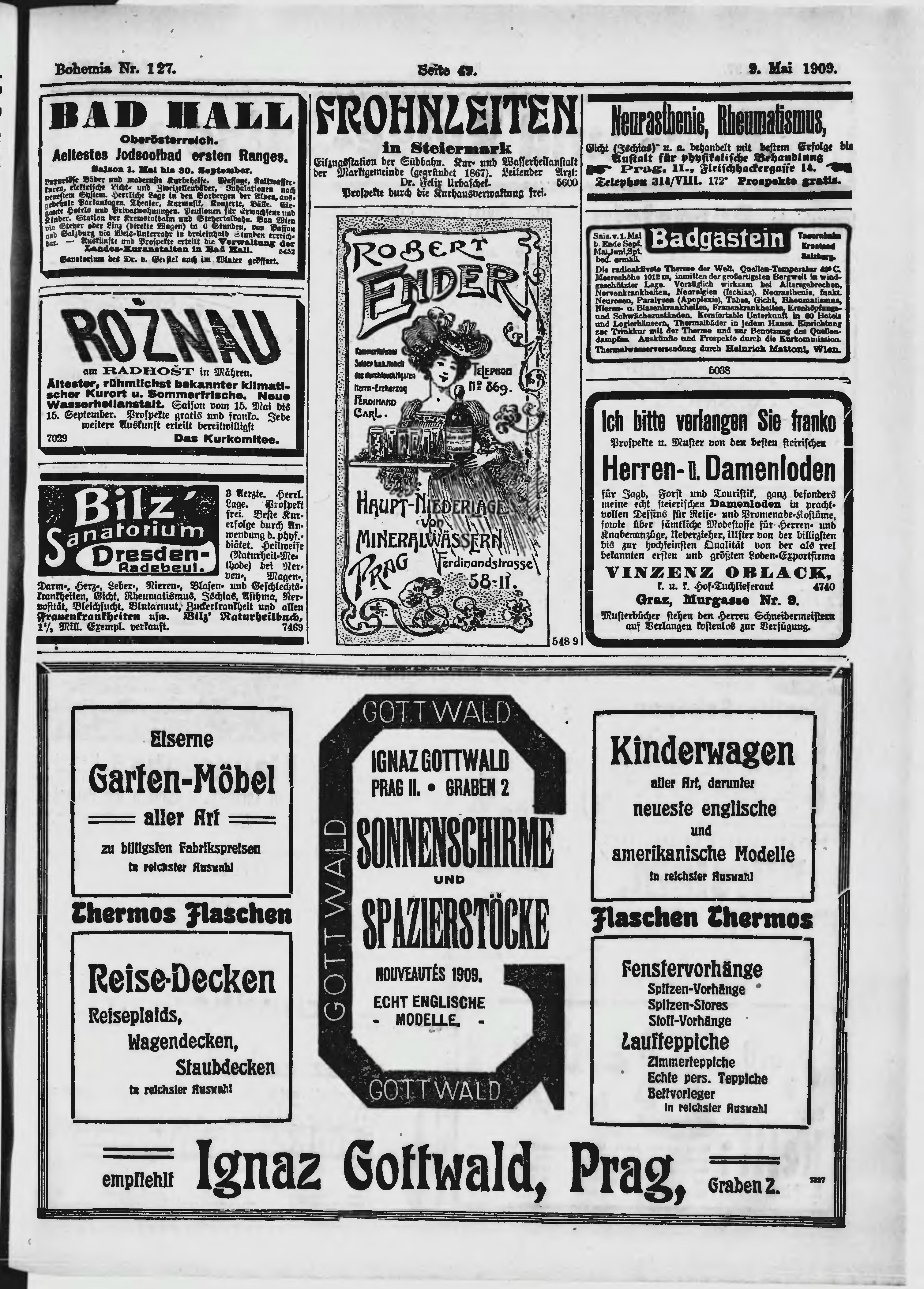 * Datum vydání výtisku: 9.5.1909 Číslo výtisku: 127 Poznámky k výtisku: ranní vydání;