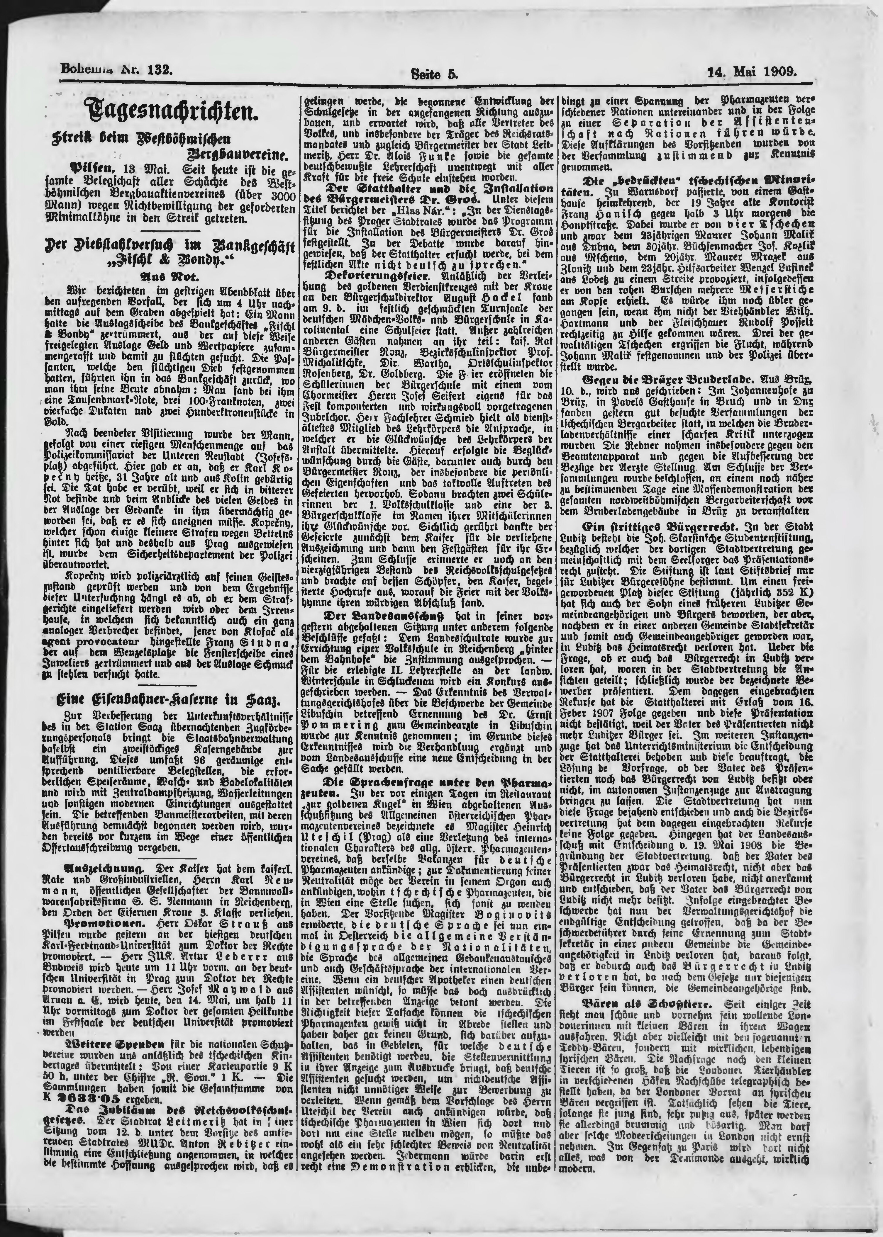 * Datum vydání výtisku: 14.5.1909 Číslo výtisku: 132 Poznámky k výtisku: ranní vydání;