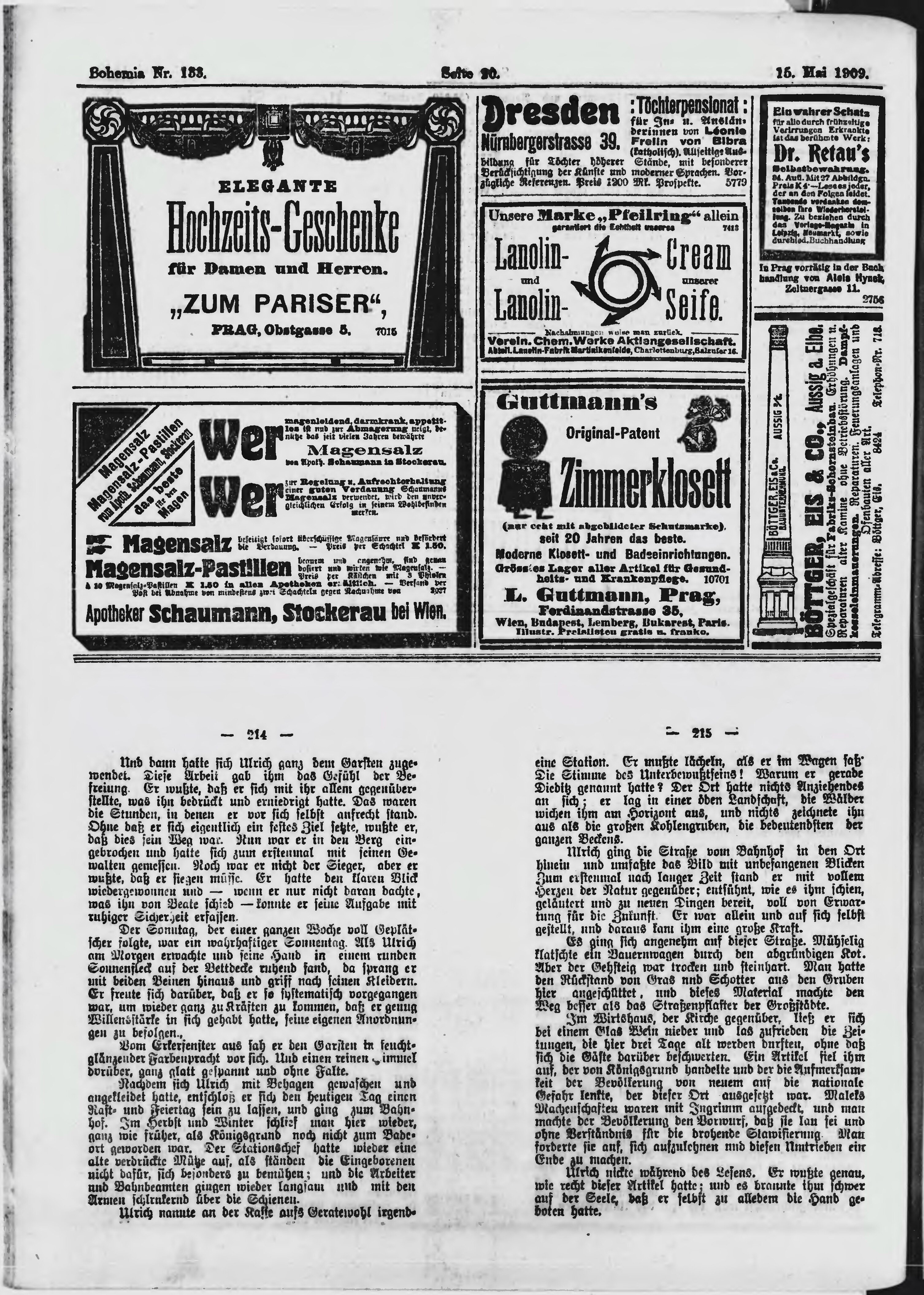* Datum vydání výtisku: 15.5.1909 Číslo výtisku: 133 Poznámky k výtisku: ranní vydání;