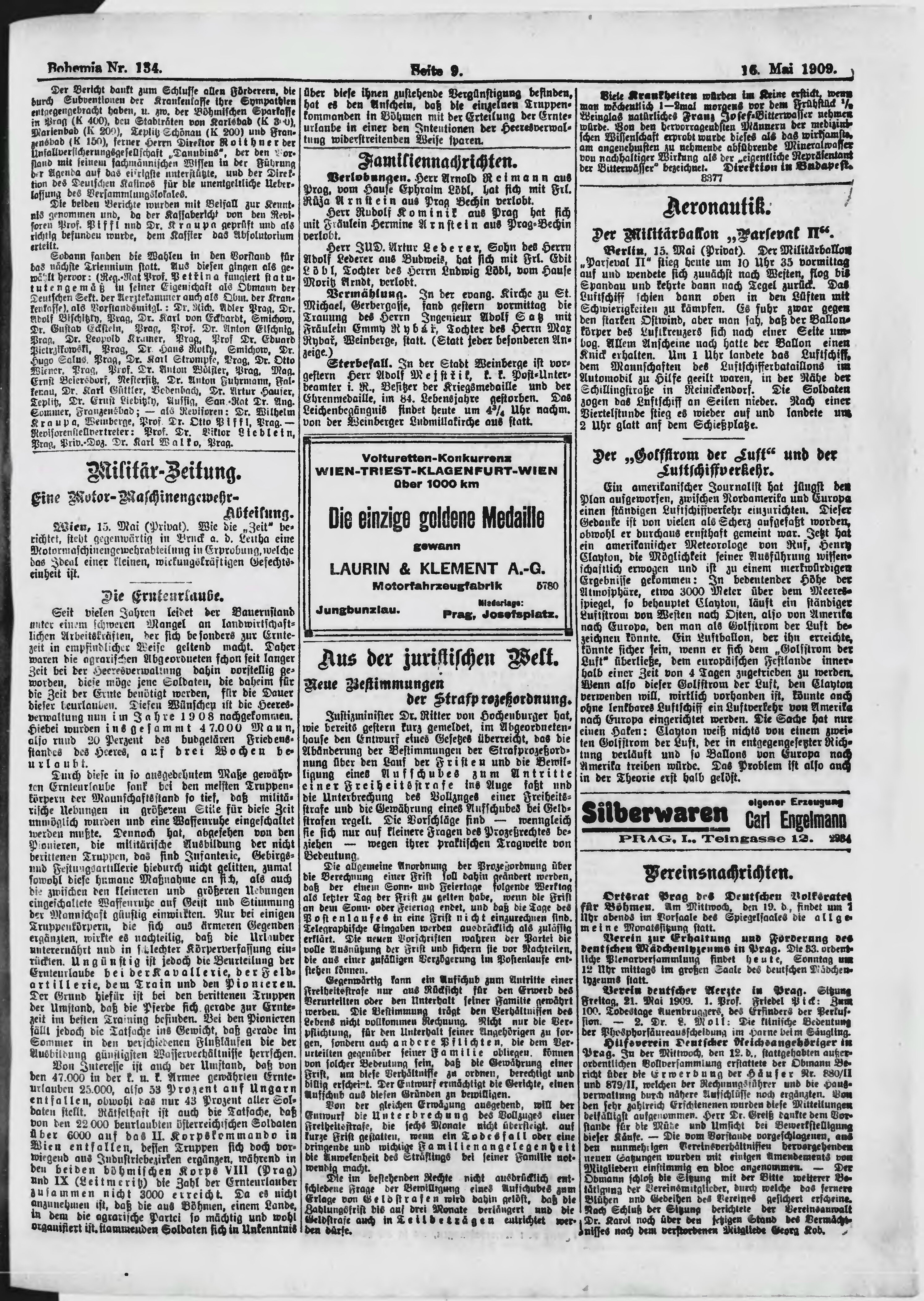 * Datum vydání výtisku: 16.5.1909 Číslo výtisku: 134 Poznámky k výtisku: s. 19, 20 není k dispozici