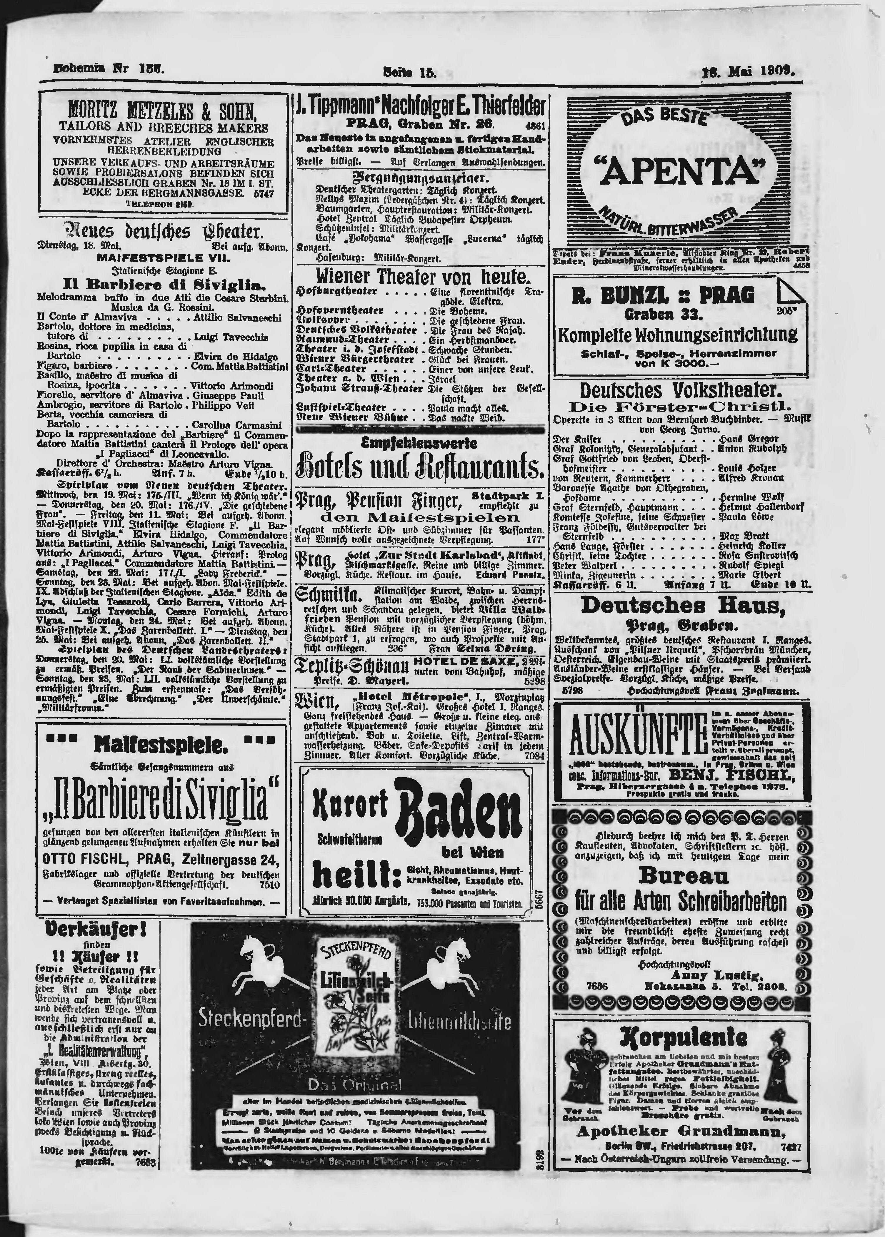 * Datum vydání výtisku: 18.5.1909 Číslo výtisku: 136 Poznámky k výtisku: ranní vydání;