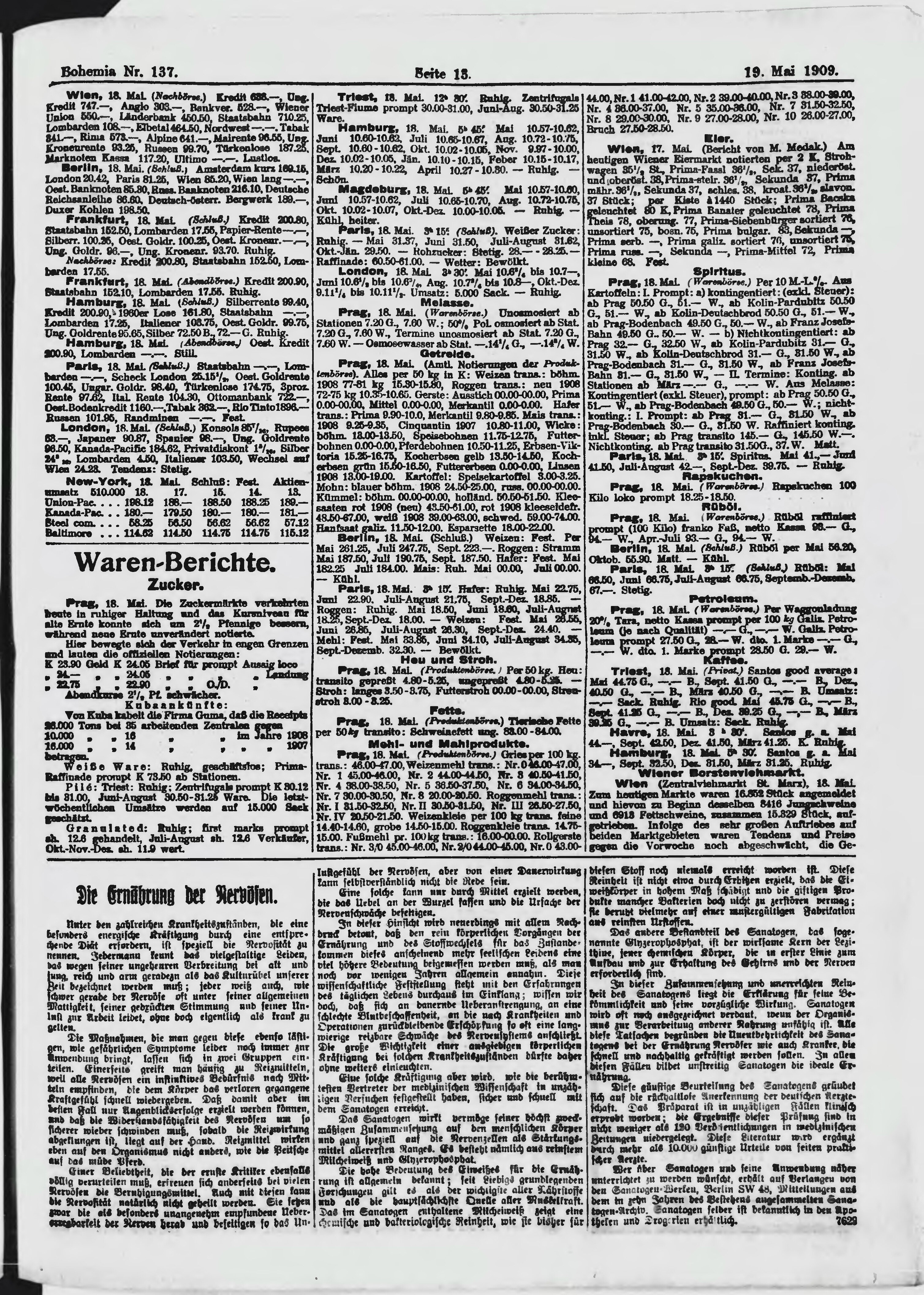 * Datum vydání výtisku: 19.5.1909 Číslo výtisku: 137 Poznámky k výtisku: ranní vydání;