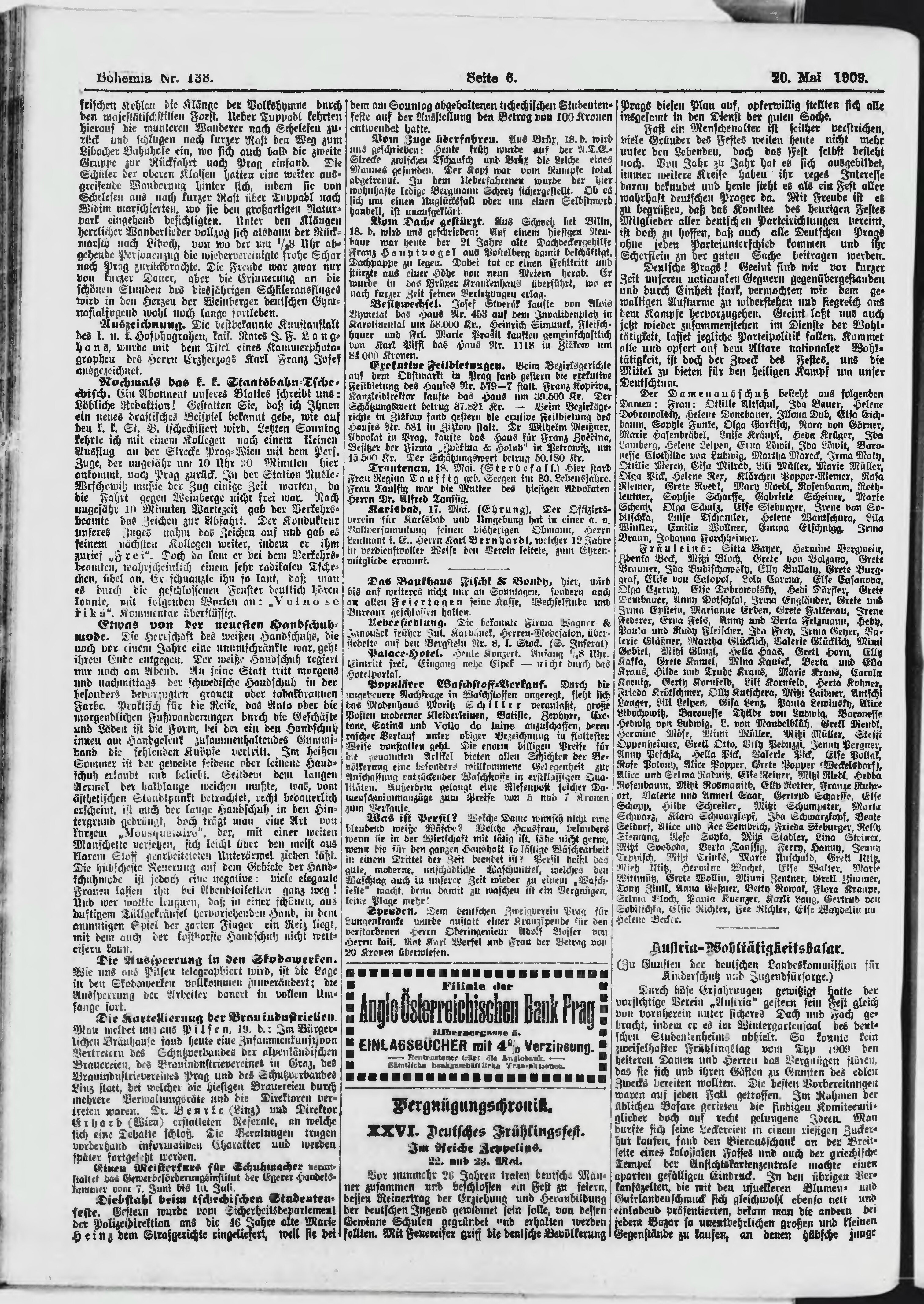 * Datum vydání výtisku: 20.5.1909 Číslo výtisku: 138 Poznámky k výtisku: ranní vydání;