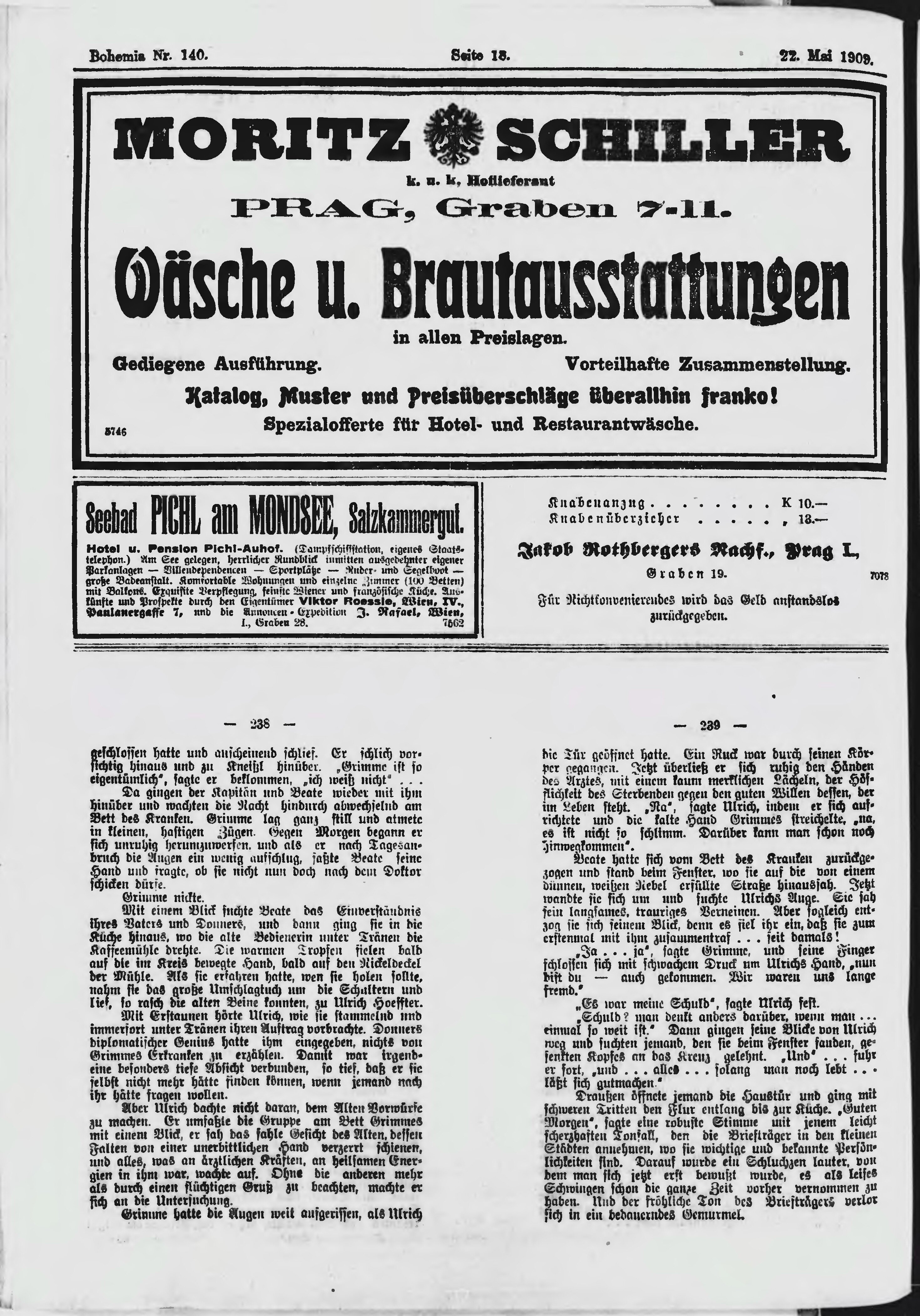 * Datum vydání výtisku: 22.5.1909 Číslo výtisku: 140 Poznámky k výtisku: ranní vydání;