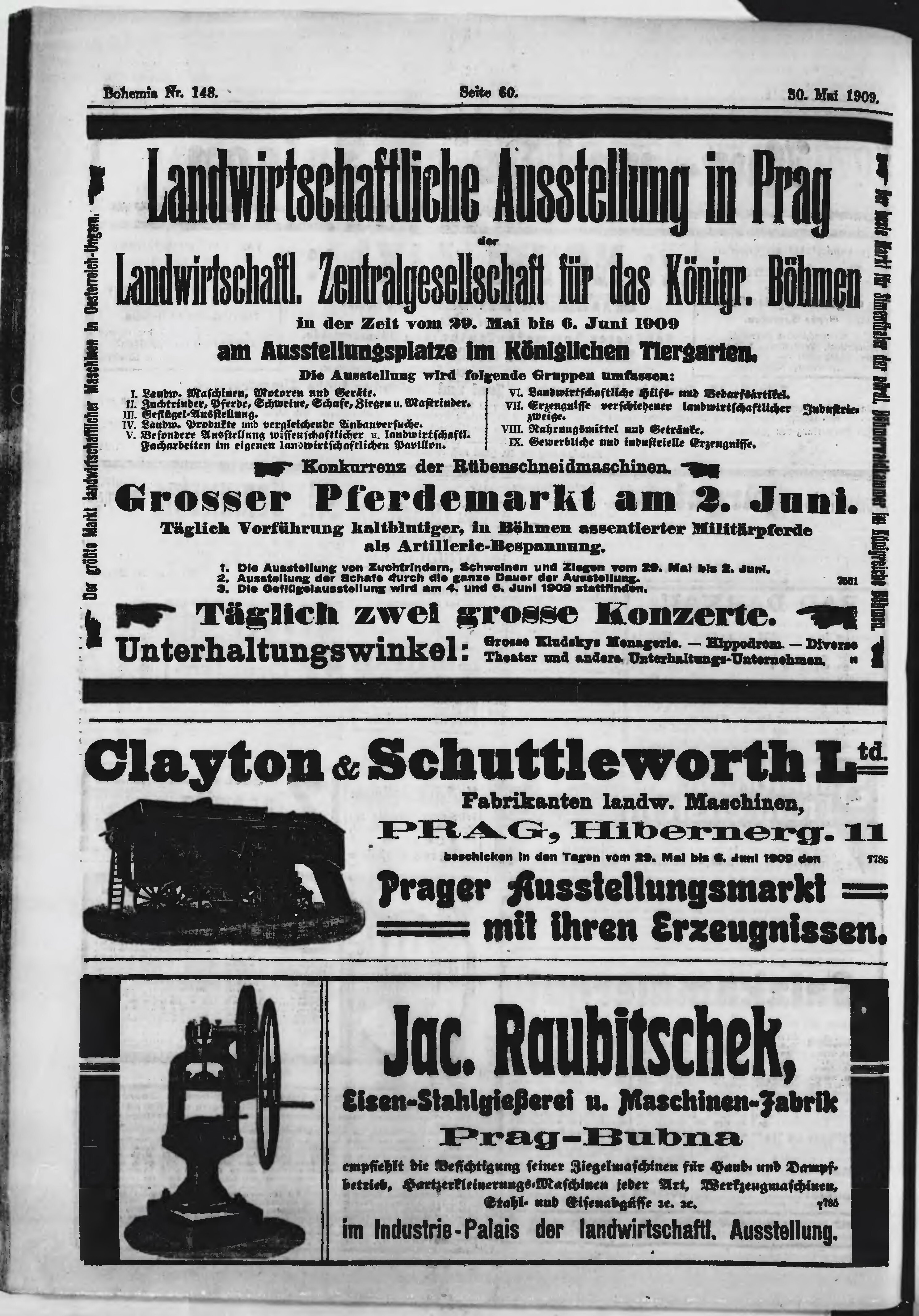 * Datum vydání výtisku: 30.5.1909 Číslo výtisku: 148 Poznámky k výtisku: ranní vydání;