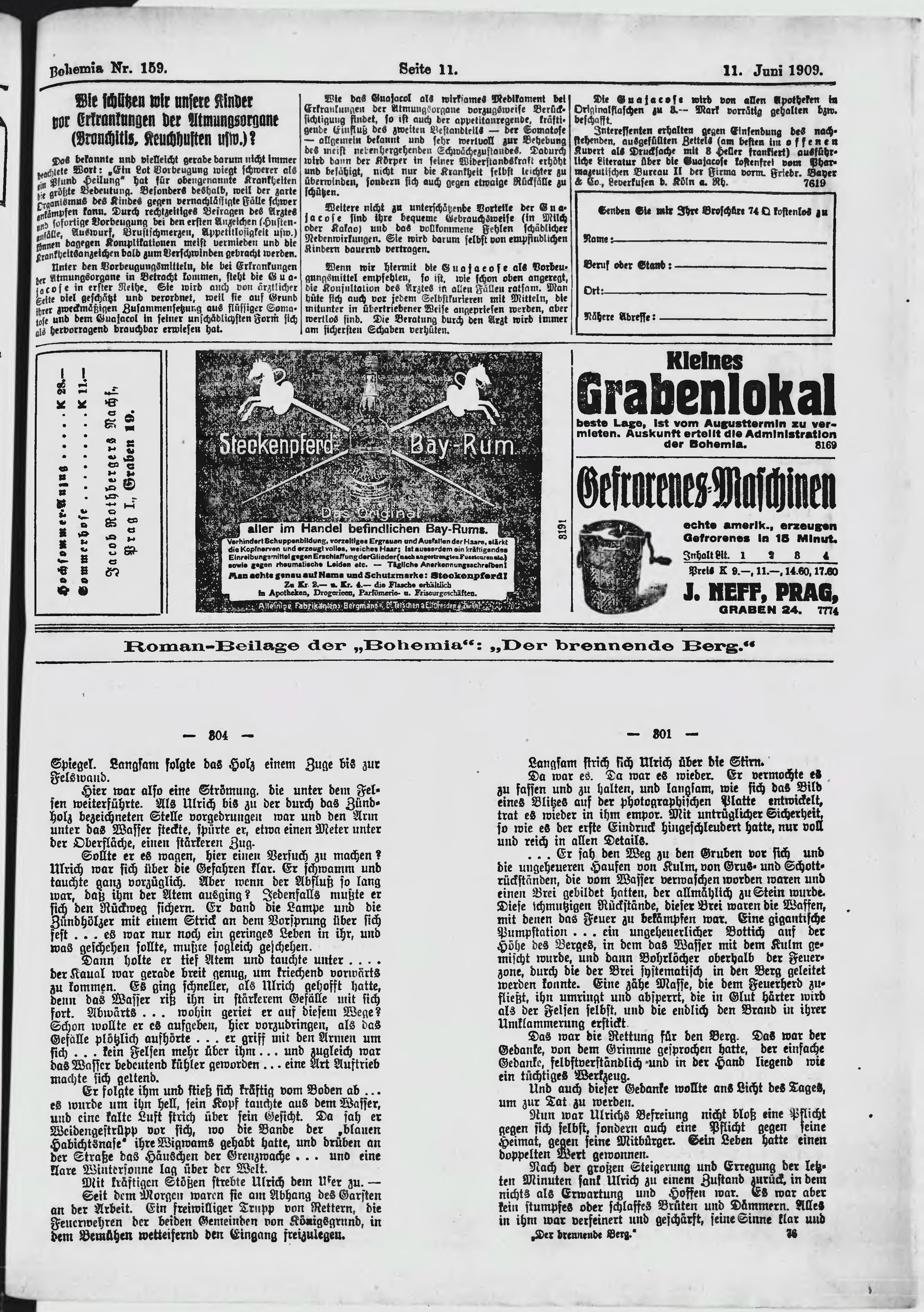 * Datum vydání výtisku: 11.6.1909 Číslo výtisku: 159 Poznámky k výtisku: ranní vydání;