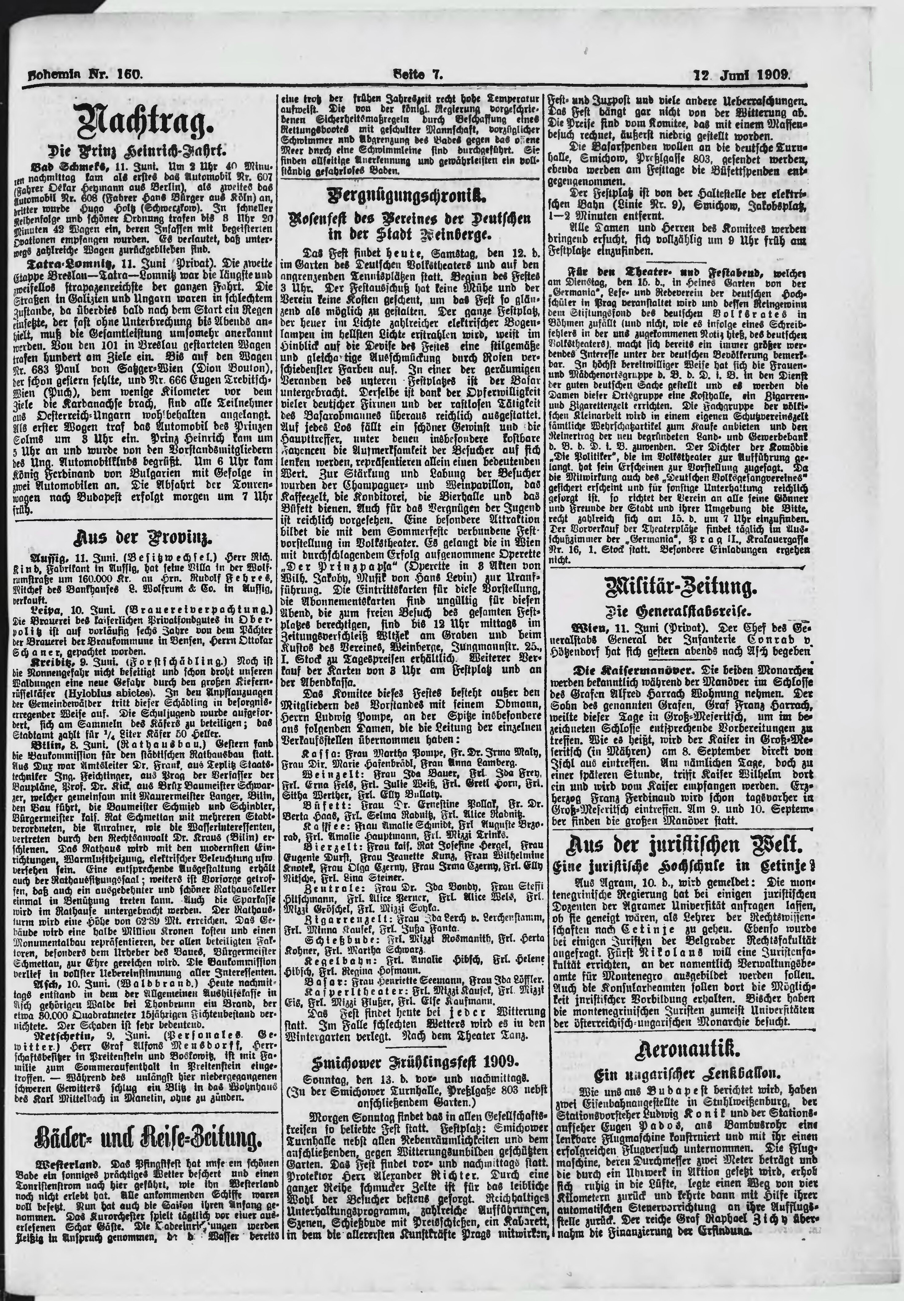 * Datum vydání výtisku: 12.6.1909 Číslo výtisku: 160 Poznámky k výtisku: ranní vydání;