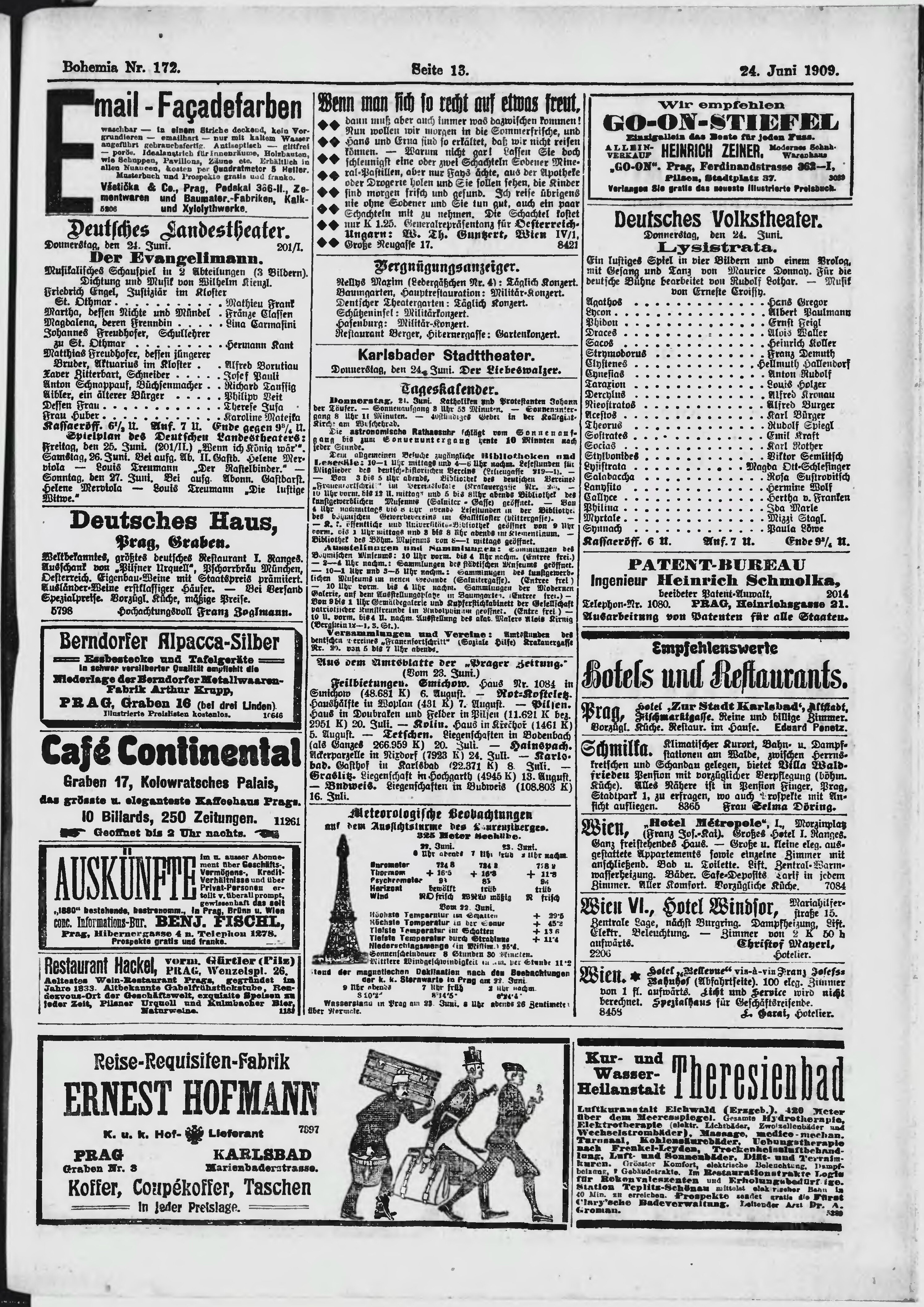 * Datum vydání výtisku: 24.6.1909 Číslo výtisku: 172 Poznámky k výtisku: ranní vydání;