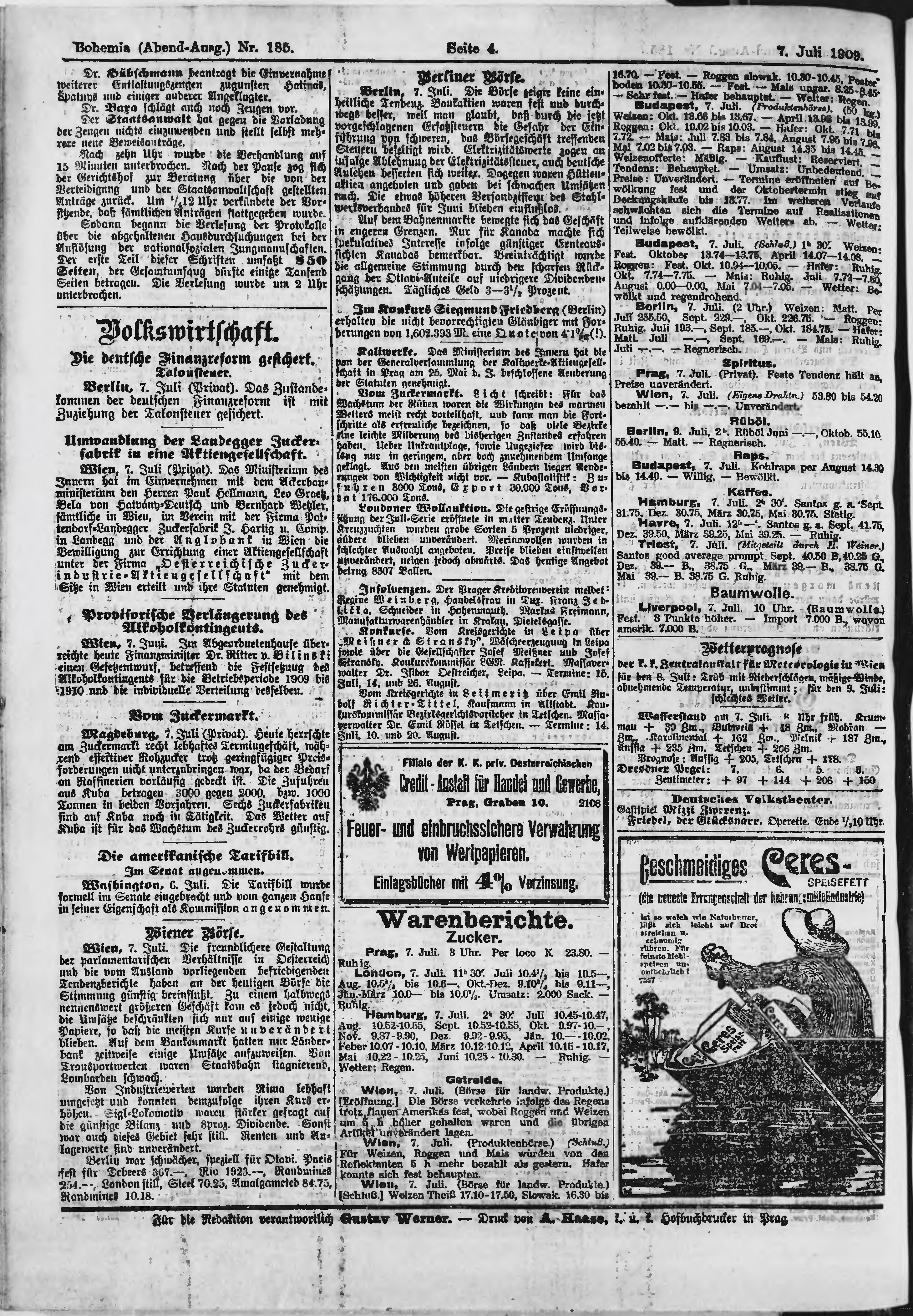 * Datum vydání výtisku: 7.7.1909 Číslo výtisku: 185 Poznámky k výtisku: večerní vydání;