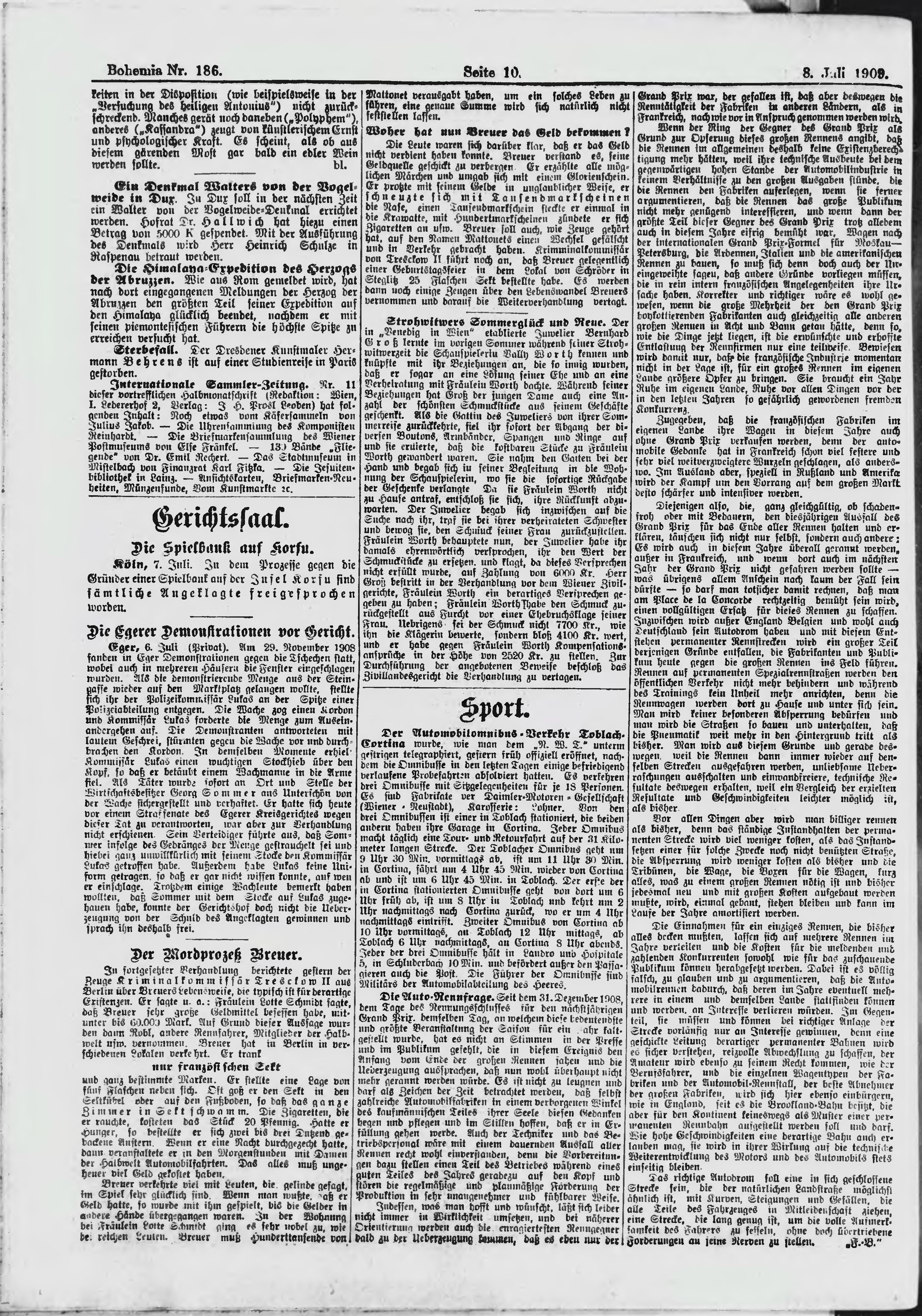 * Datum vydání výtisku: 8.7.1909 Číslo výtisku: 186 Poznámky k výtisku: ranní vydání;