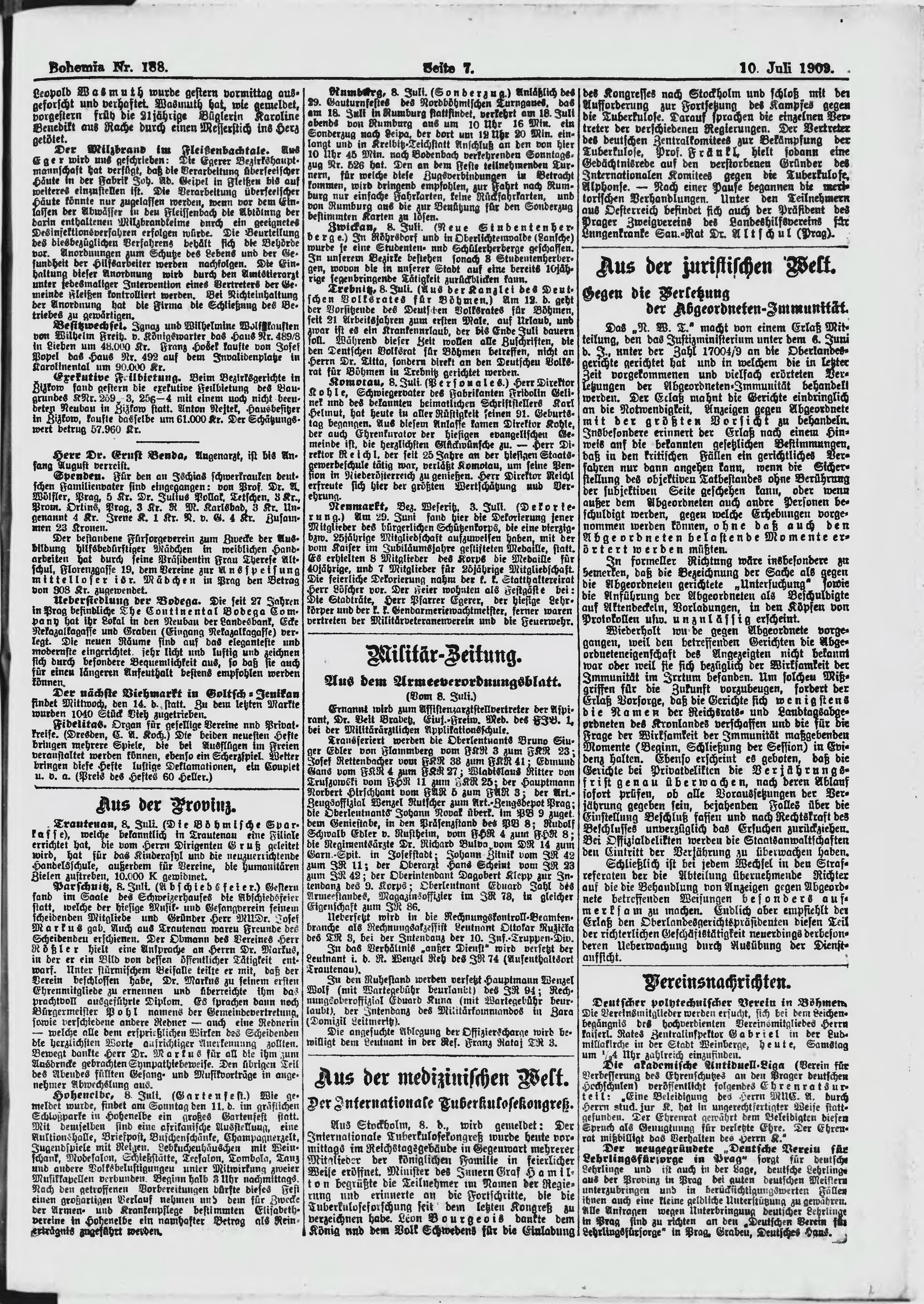 * Datum vydání výtisku: 10.7.1909 Číslo výtisku: 188 Poznámky k výtisku: ranní vydání;