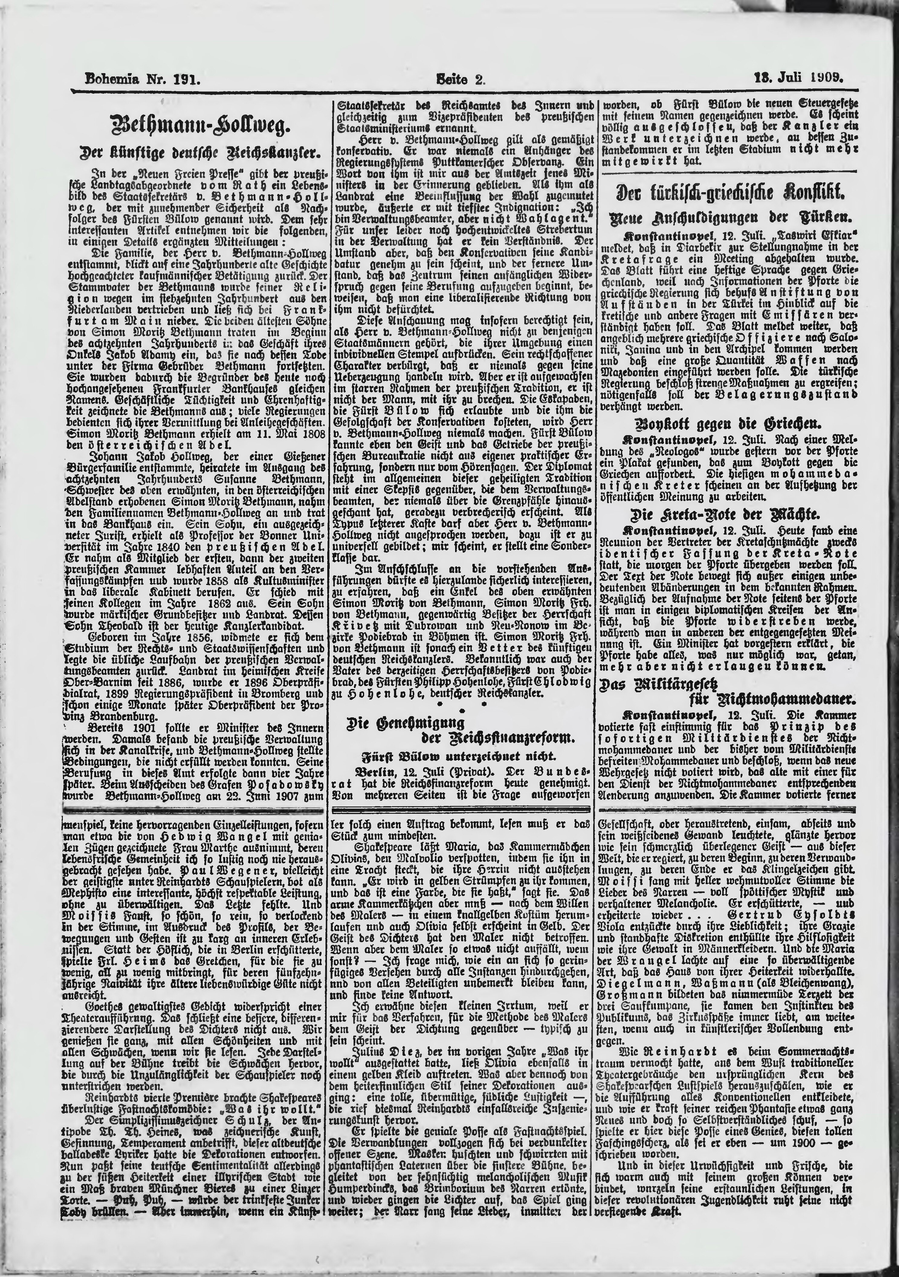 * Datum vydání výtisku: 13.7.1909 Číslo výtisku: 191 Poznámky k výtisku: ranní vydání;